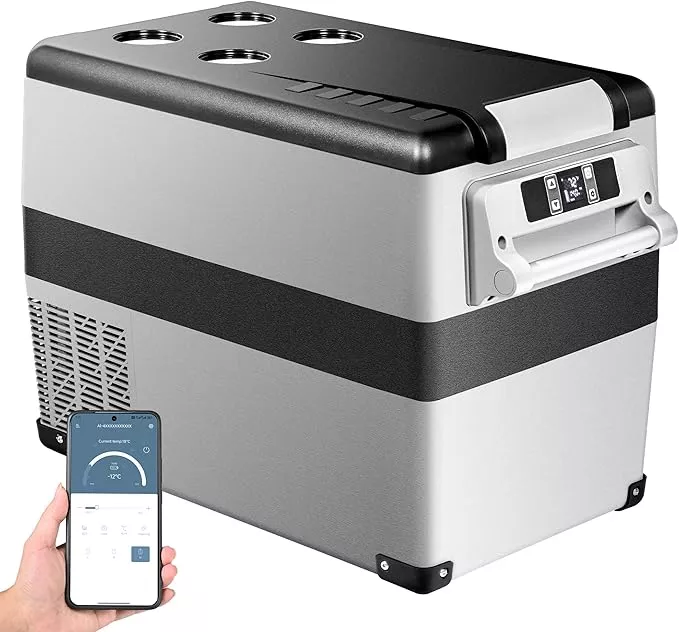12V 48 Quart Portable Car Refrigerator Freezer with APP Control & Detachable Basket