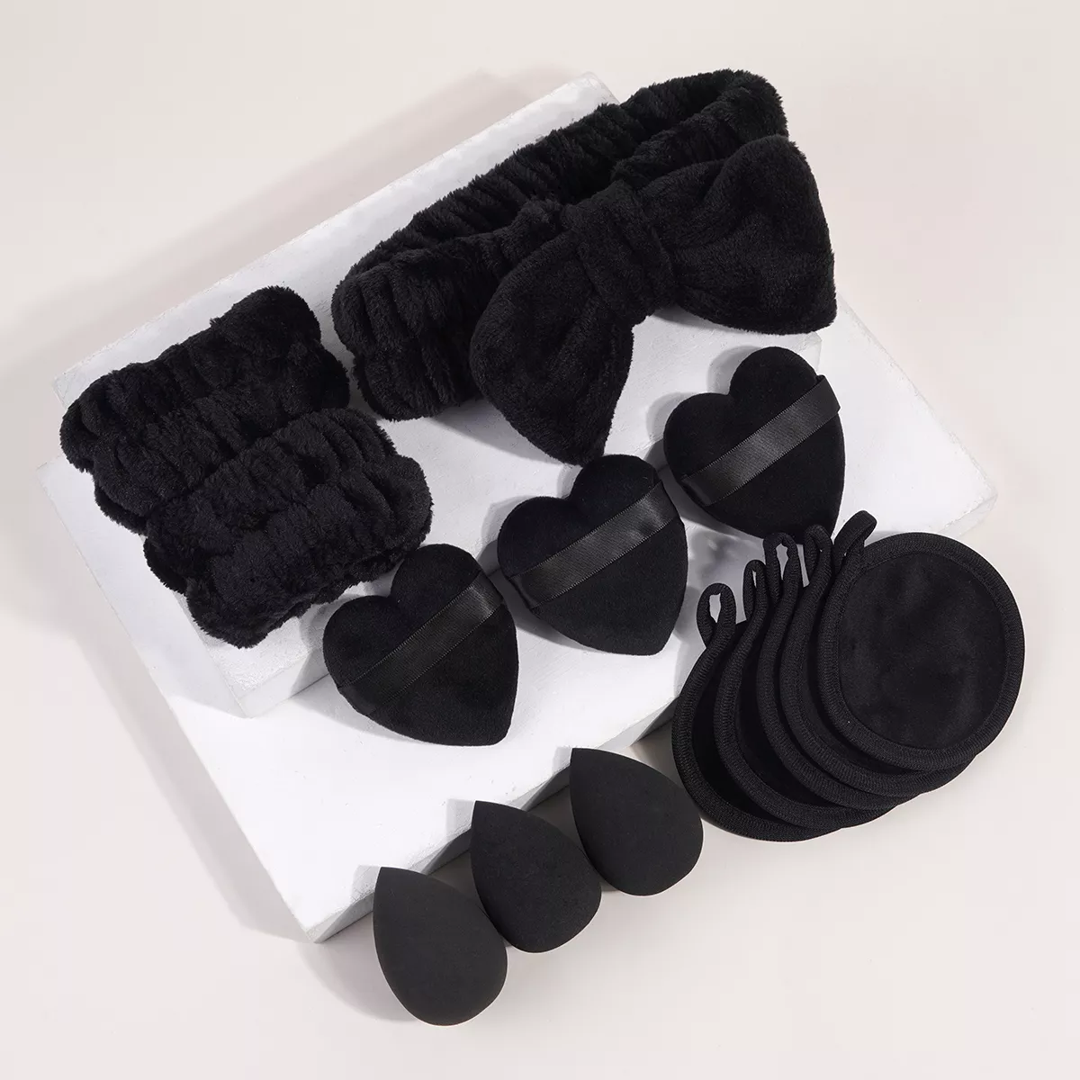 • All-in-One Set – Includes 14 essential makeup tools: sponges, a headband, and wristbands