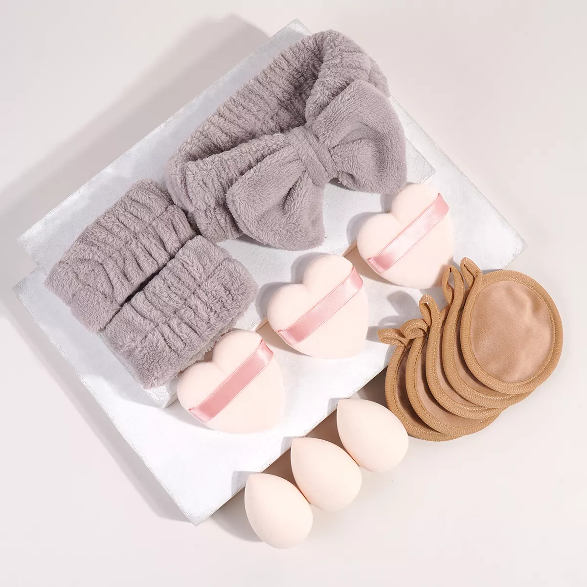 Looking for a complete beauty sponge kit that simplifies your routine and elevates your makeup finish? This 14PCS Makeup Sponge Blender Set is exactly what your vanity is missing. Packed with a variety of soft, high-quality cosmetic puff sponges, a cute headband, and practical wristbands, this kit is designed to give you a flawless makeup experience every time you pick up a brush—or sponge.