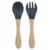 2PCS Silicone Baby Spoon and Fork Set with Wooden Handle