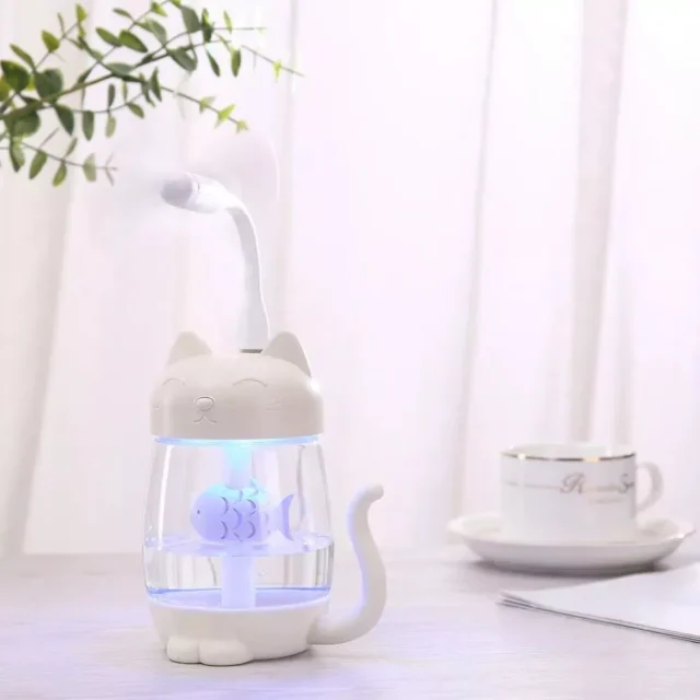 3-in-1 Cat & Fish Ultrasonic LED Humidifier – USB Aroma Diffuser with Timer