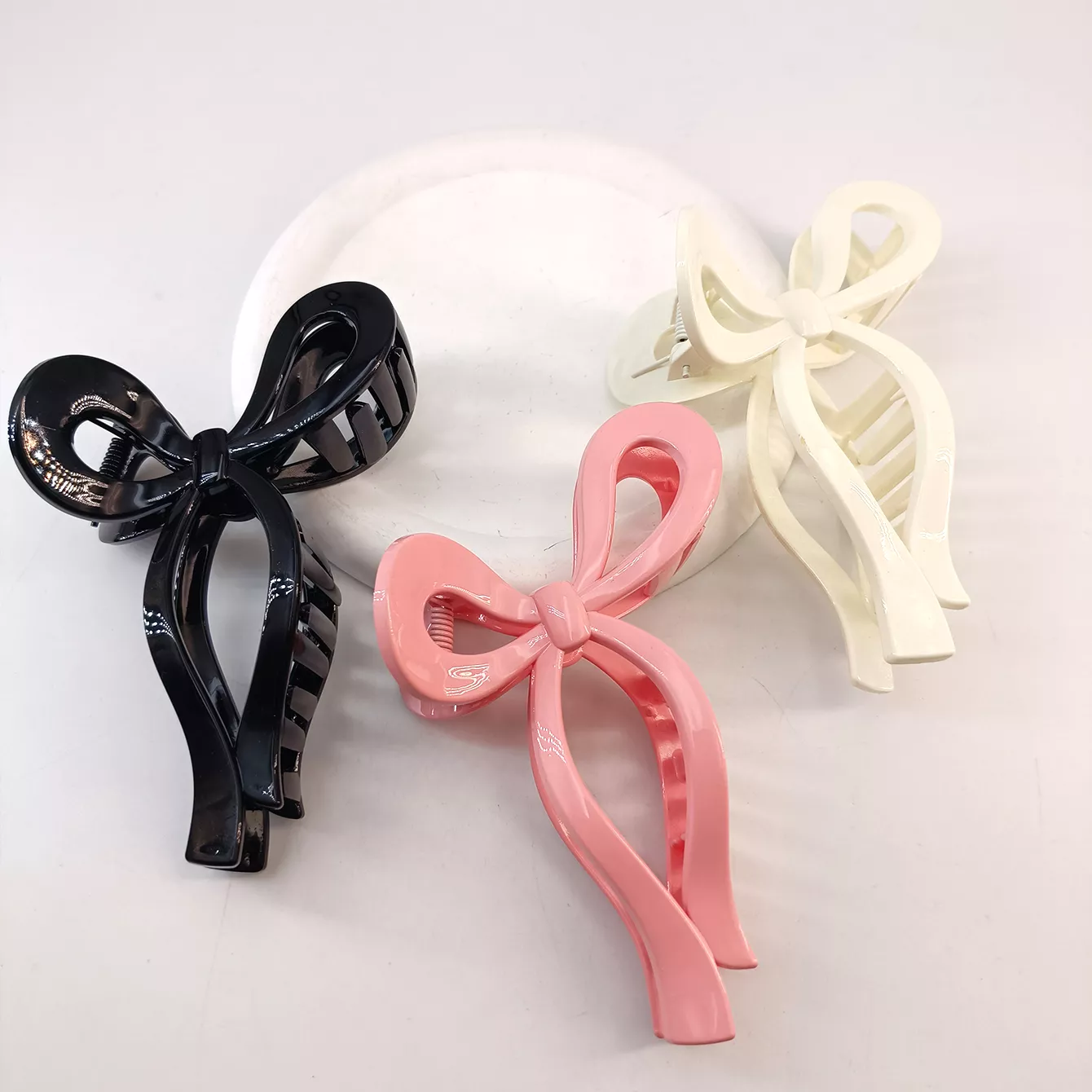 Add a charming touch to your hair with this set of 3PCS 5.2-inch Hollow Streamer Bow Hair Claw Clips. Designed with a unique geometric shape and a cute, romantic bow style, these hairpins bring the perfect blend of simplicity and flair. Made from high-quality oil-dripping plastic, each clip offers a glossy finish that adds an elegant shimmer to your hairstyle without overwhelming your look.