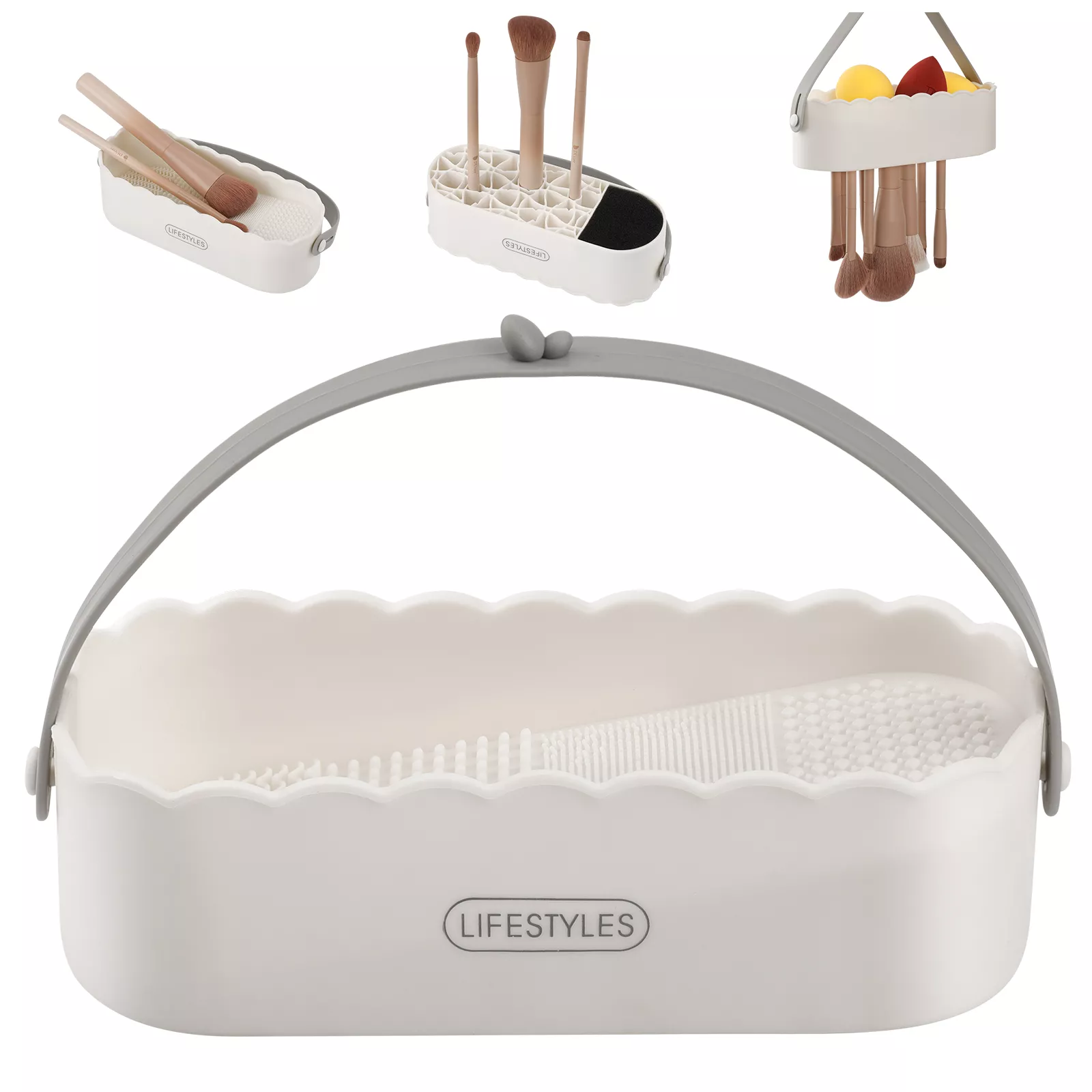 • 4-in-1 Functionality: Scrub, rinse, dry, and store your brushes and sponges in one convenient station.