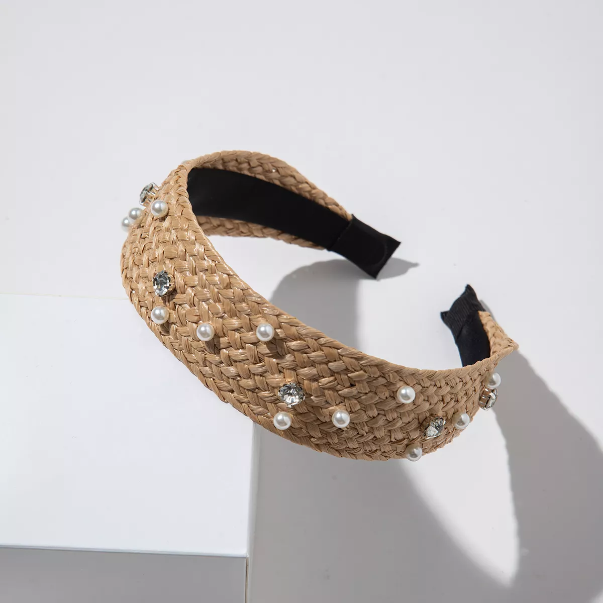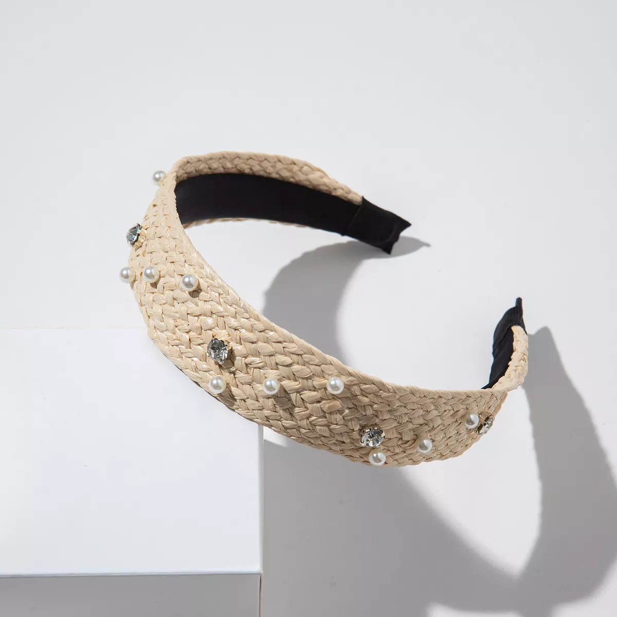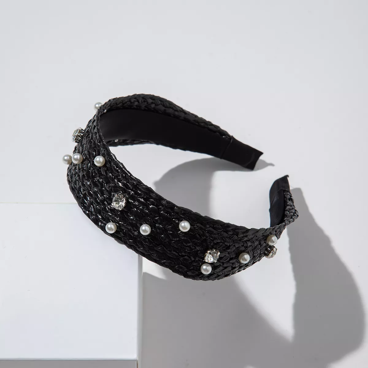 4cm Wide Brim Hollow Pattern Pearl & Zircon Women’s Hair Headband