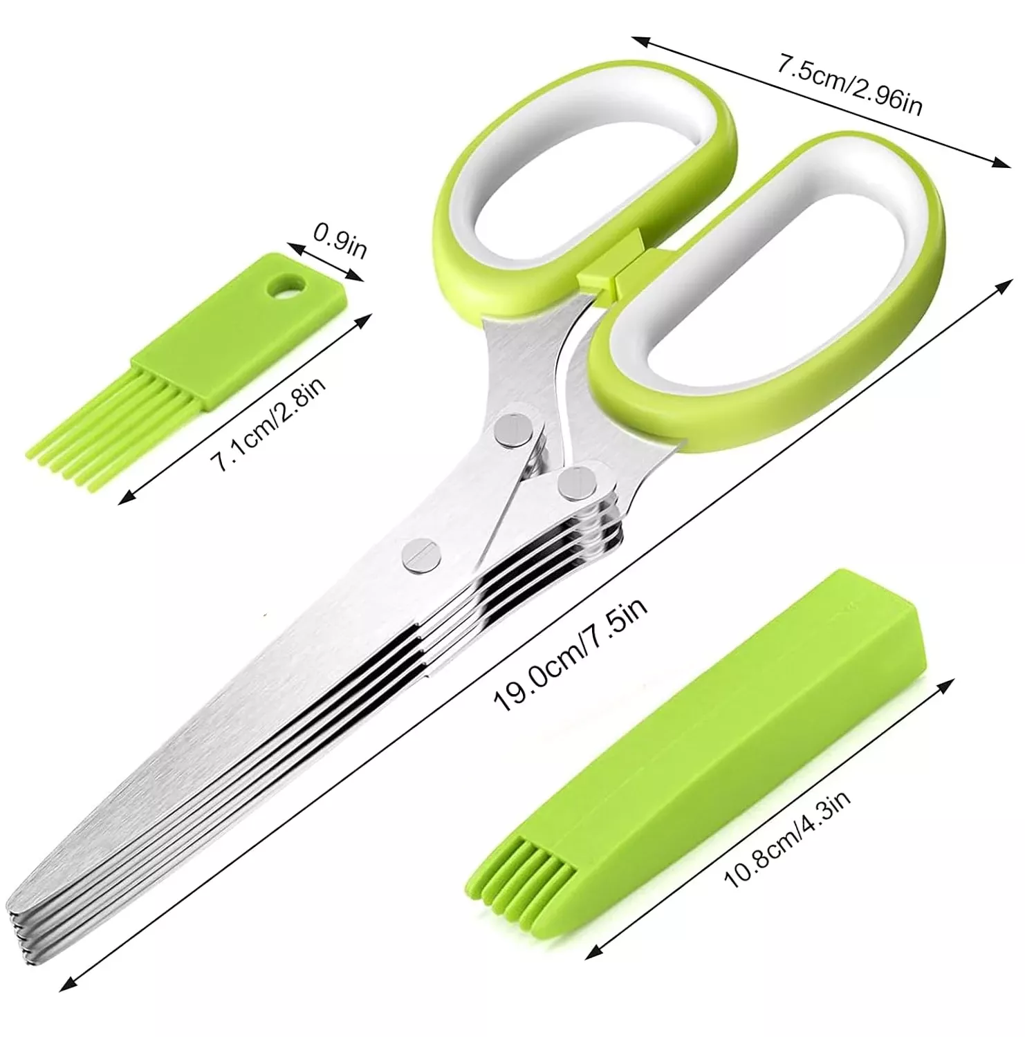 5-Layer Stainless Steel Scallion Cutter – Multi-Functional Kitchen Scissors for Effortless Chopping