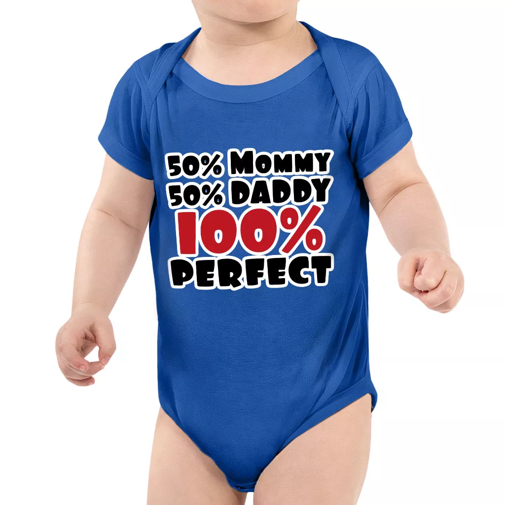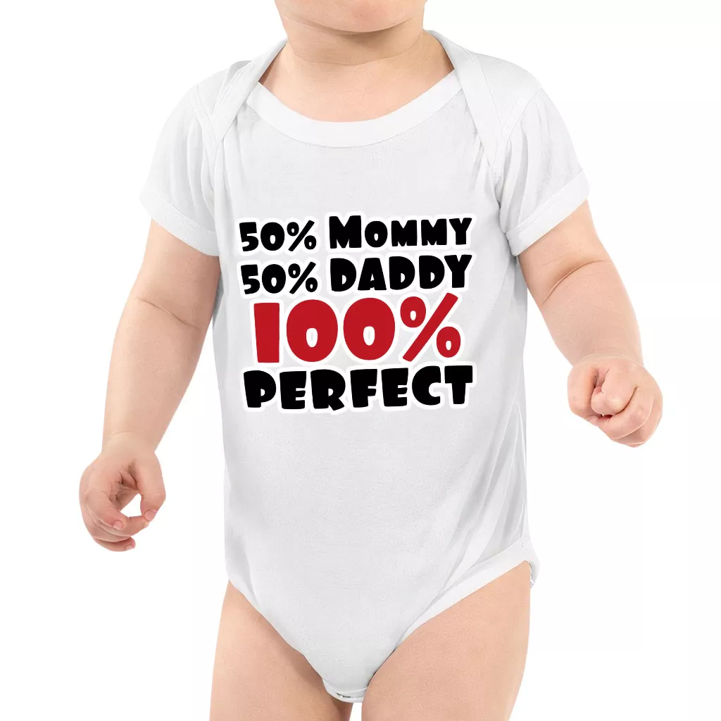 50 Mommy 50 Daddy 100 Perfect Baby Jersey Onesie – Trendy Baby Bodysuit – Cute Baby One-Piece