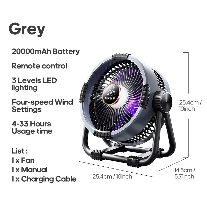 • 20000mAh Rechargeable Battery – Enjoy up to 100 hours of fan use on a single charge