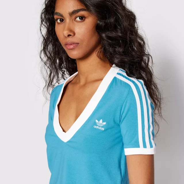 Adidas Women’s Light Blue V-Neck T-Shirt for Spring/Summer