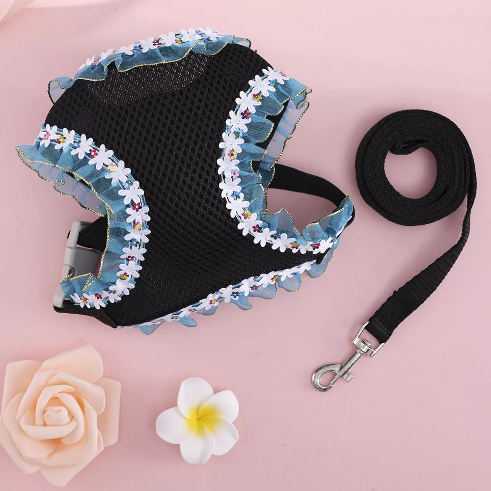 Keep your furry friend safe and comfortable with this adorable lace-trimmed harness set, designed especially for small dogs and cats. Crafted with breathable mesh fabric, this harness offers lightweight wear that won’t overheat your pet, making it perfect for walks in warm weather or any season. The delicate lace detail adds a fresh, charming touch, ensuring your pet looks as cute as they feel.