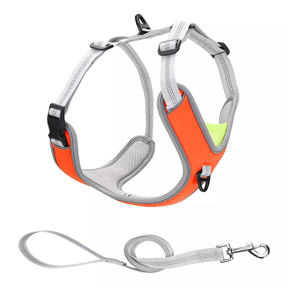 Available in three vibrant colors—blue, orange, and green—this harness is more than just functional; it’s stylish too. The reflective strips enhance visibility during low-light conditions, helping you and your dog stay safe on night walks. The adjustable straps allow a perfect fit, adapting easily to your dog’s shape without restricting movement or causing discomfort.