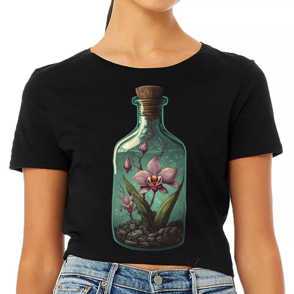Adorable Women’s Cropped T-Shirt – Flowers Crop Top – Unique Cropped Tee