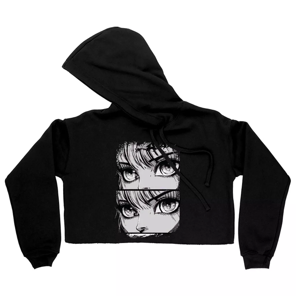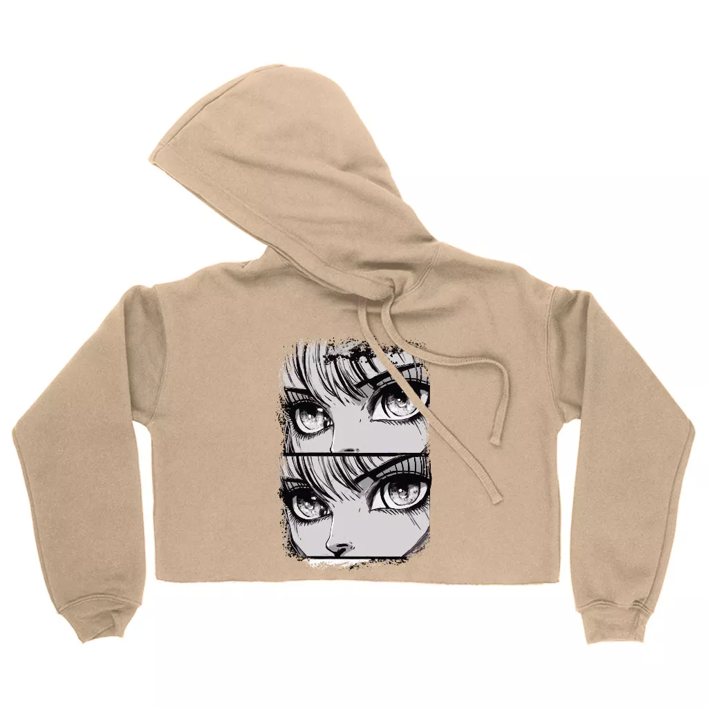 Anime Eyes Women’s Cropped Hoodie – Graphic Cropped Hoodie – Trendy Hooded Sweatshirt