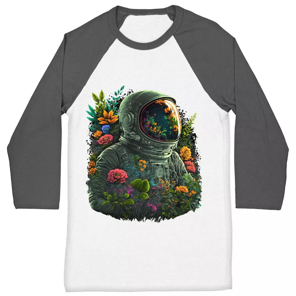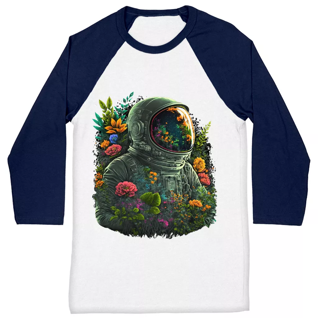 Astronaut Design Baseball T-Shirt – Flower T-Shirt – Cute Design Baseball Tee