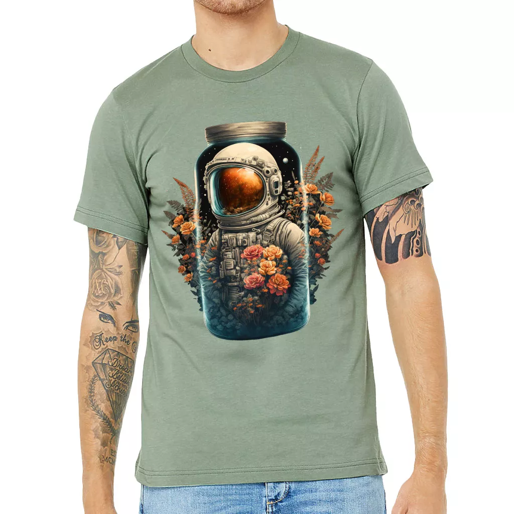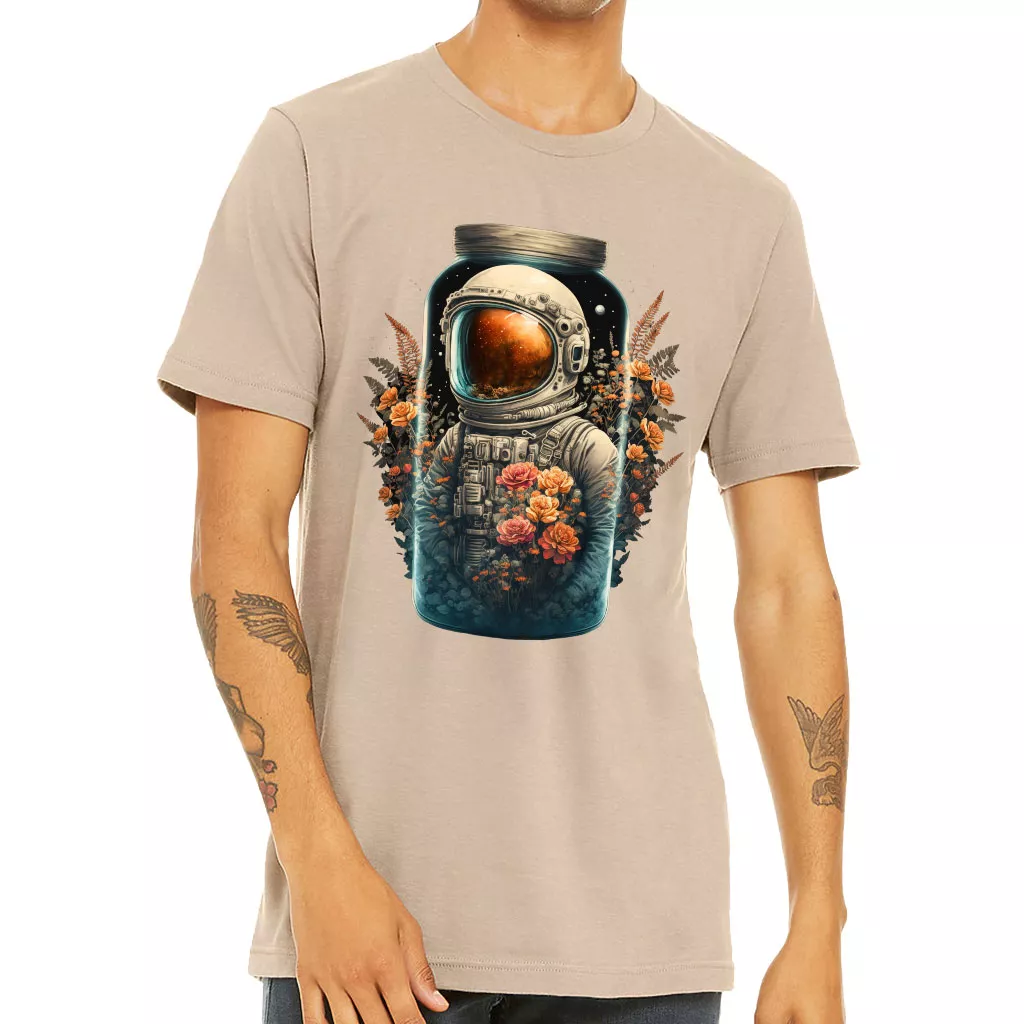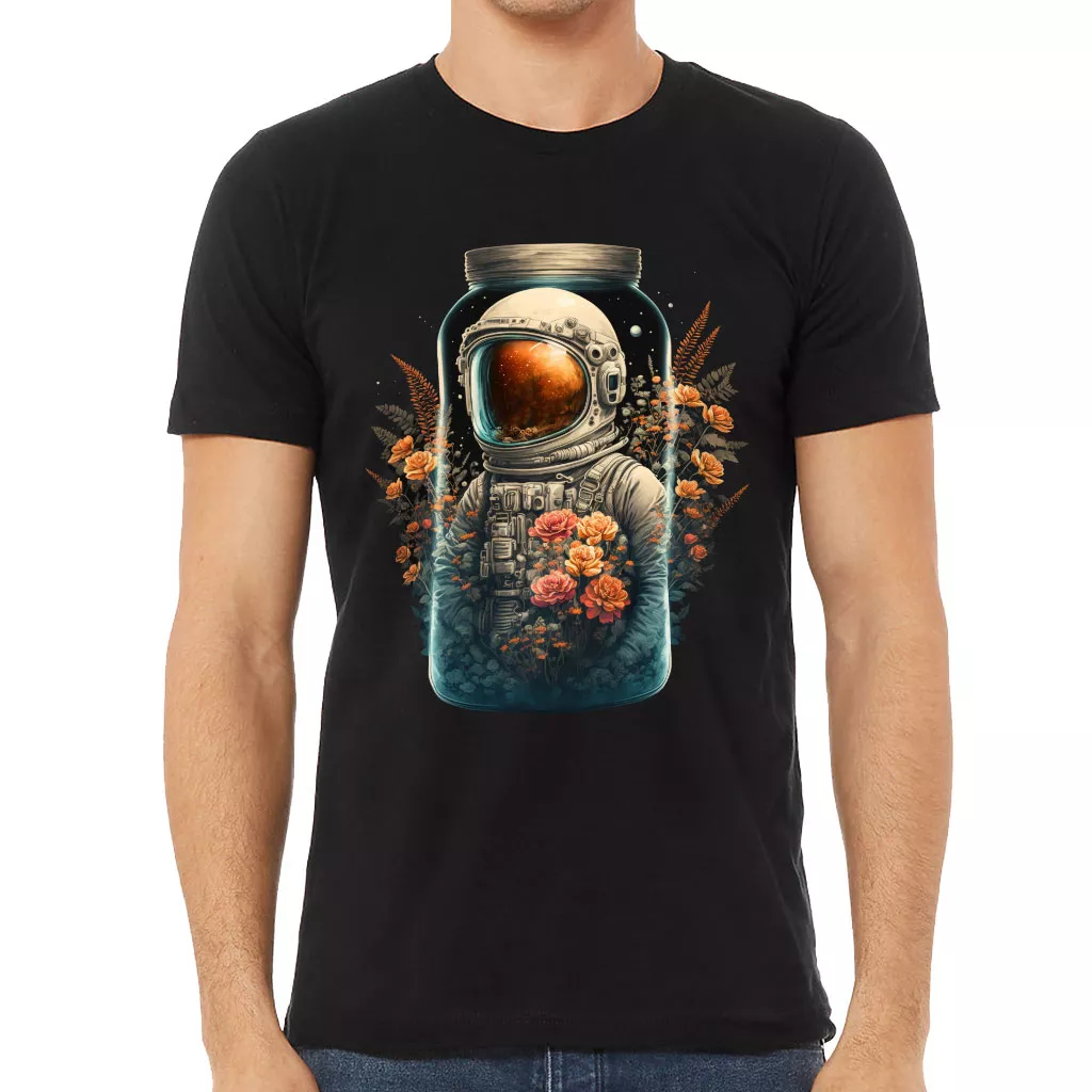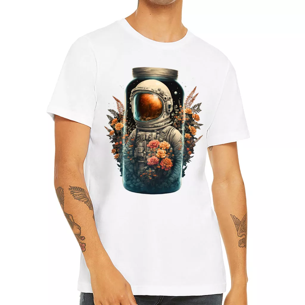 Astronaut Print Short Sleeve T-Shirt – Floral T-Shirt – Illustration Short Sleeve Tee