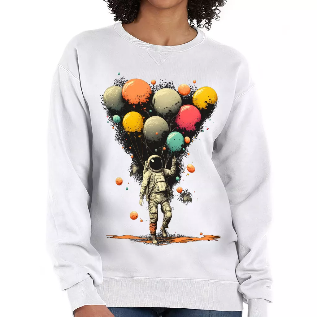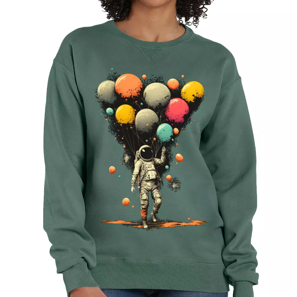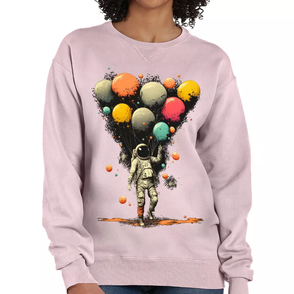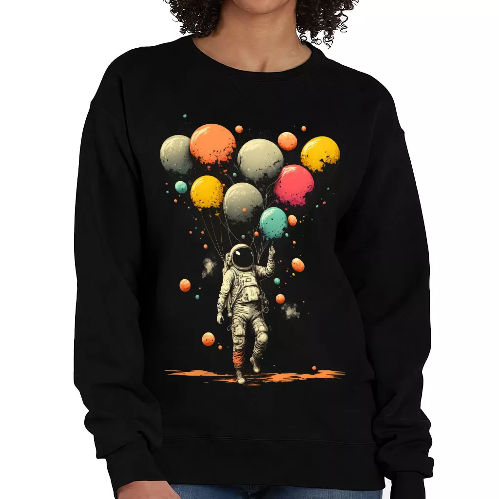 Astronaut With Balloons Crewneck Sweatshirt – Cool Design Women’s Sweatshirt – Themed Sweatshirt