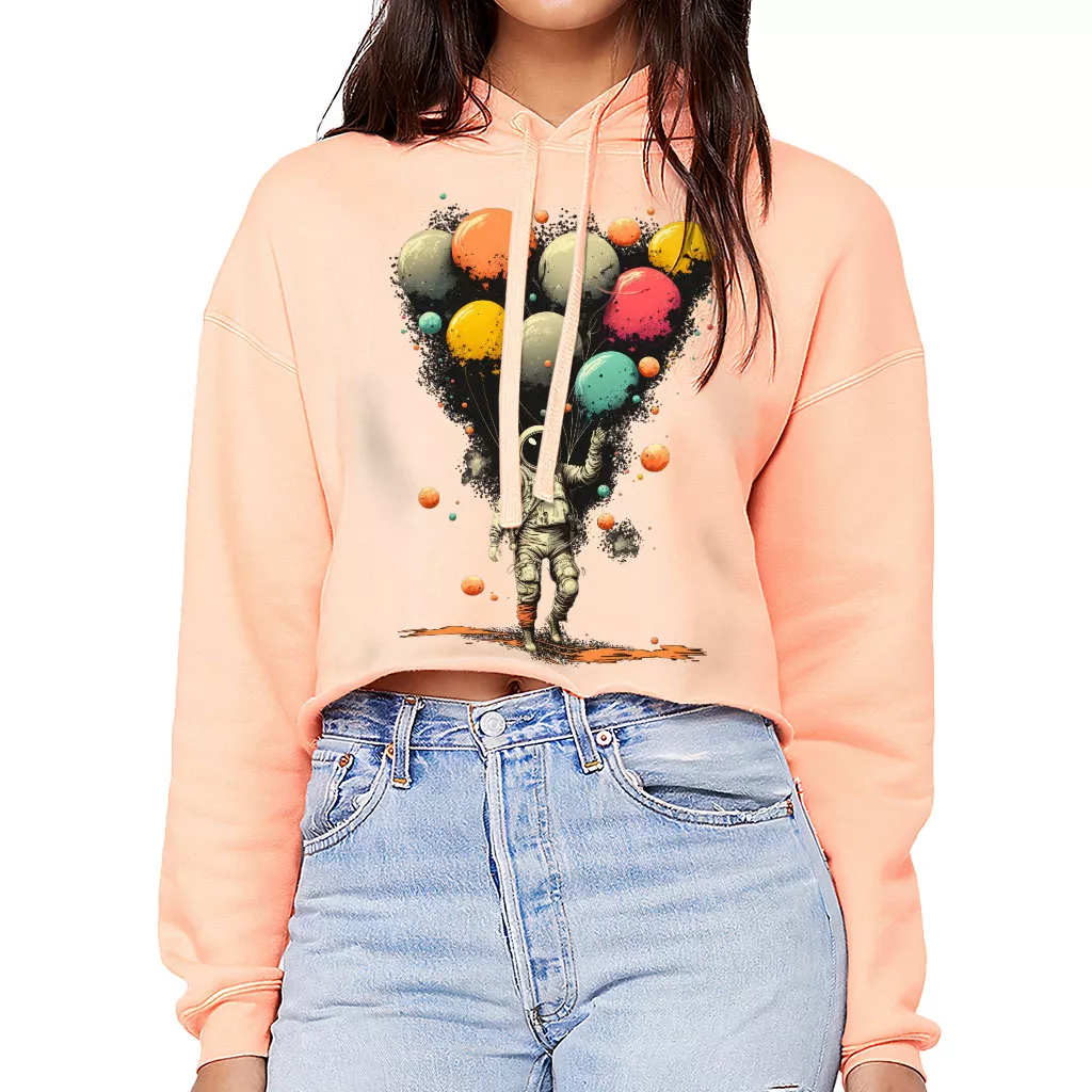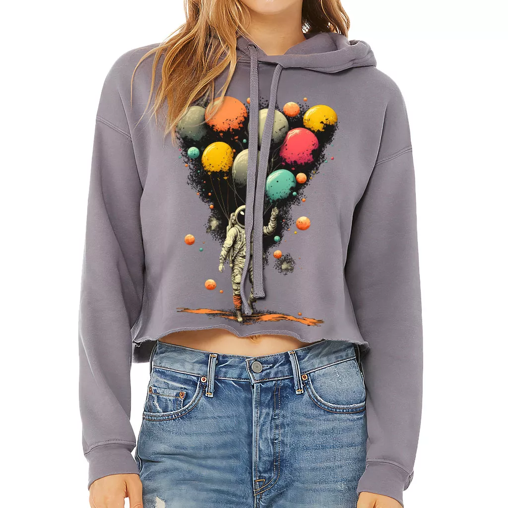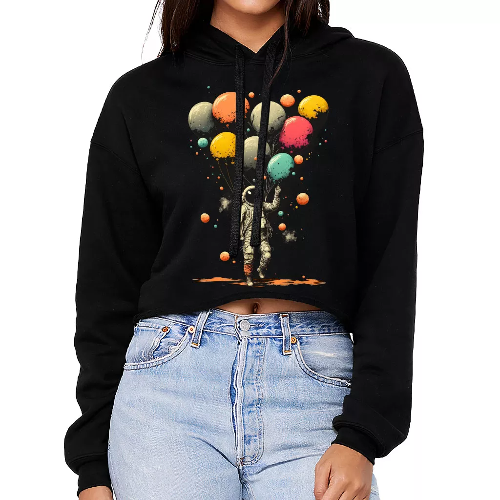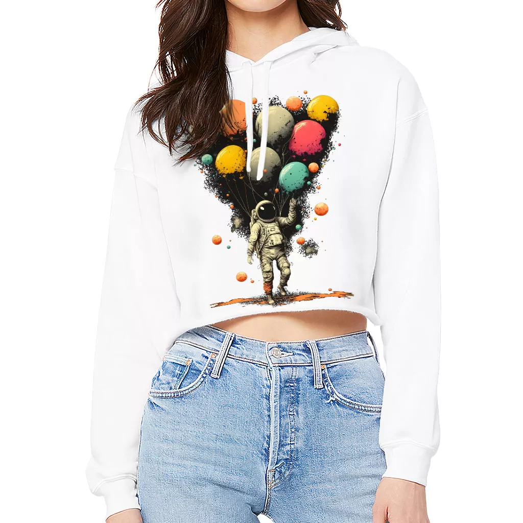 Astronaut With Balloons Women’s Cropped Hoodie – Cool Design Cropped Hoodie – Themed Hooded Sweatshirt
