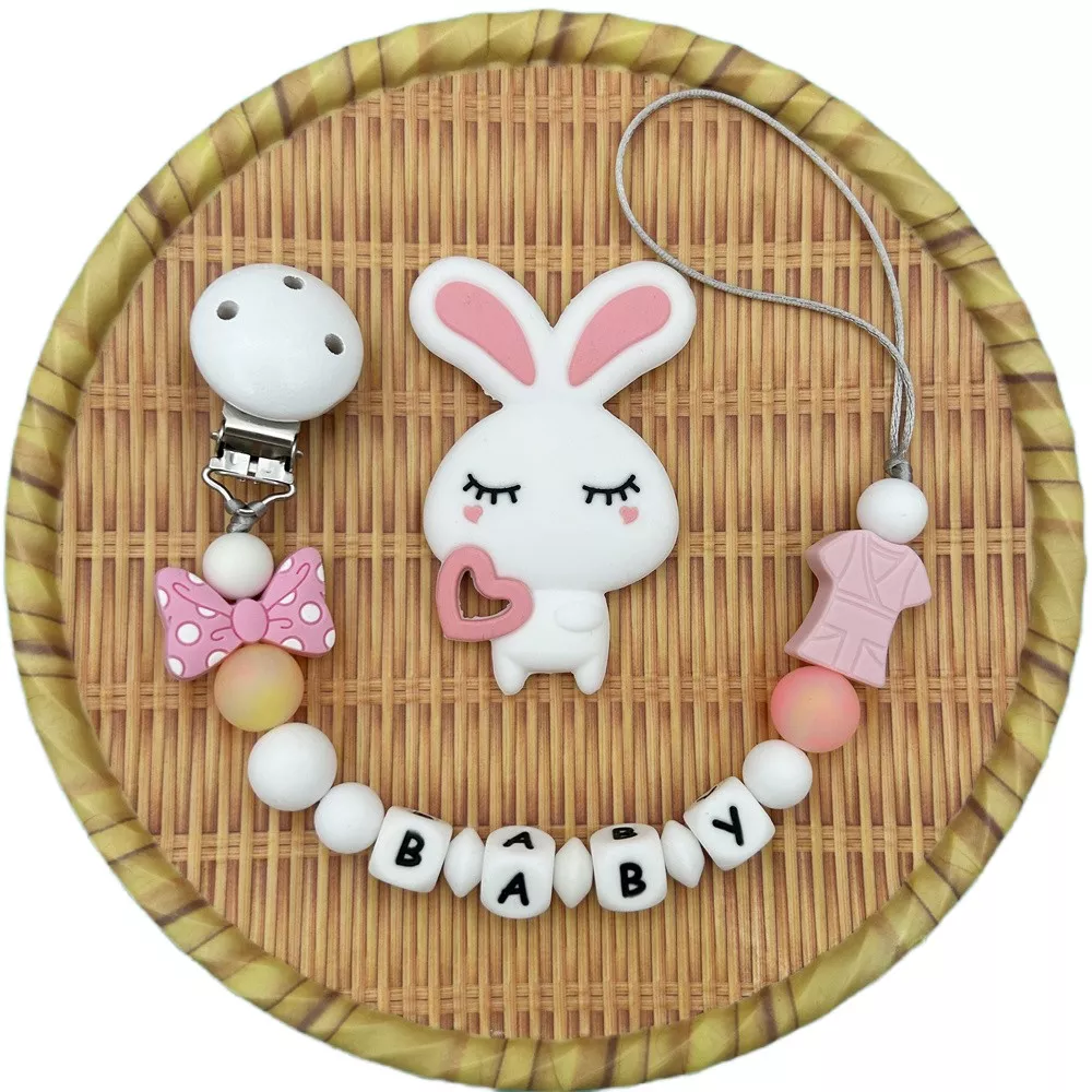 Say goodbye to dropped and dirty pacifiers with this irresistible Baby Pacifier Clip featuring luminous silicone beads and a cute bunny pendant. Designed with love and care, this teether chain is both a functional accessory and an adorable keepsake. Crafted from high-quality, baby-safe silicone, this clip is soft, chewable, and free of BPA, latex, PVC, phthalates, and nitrosamines—so you can feel confident it’s safe for your little one.