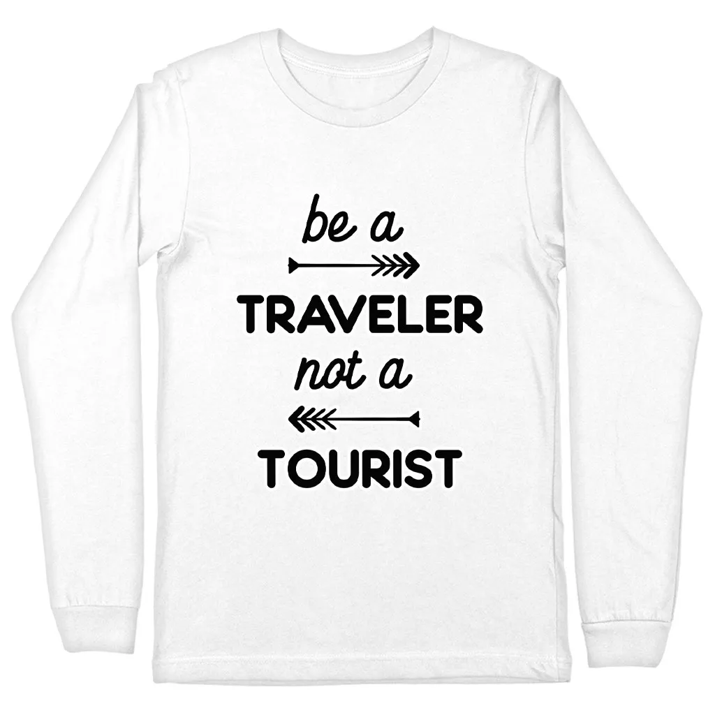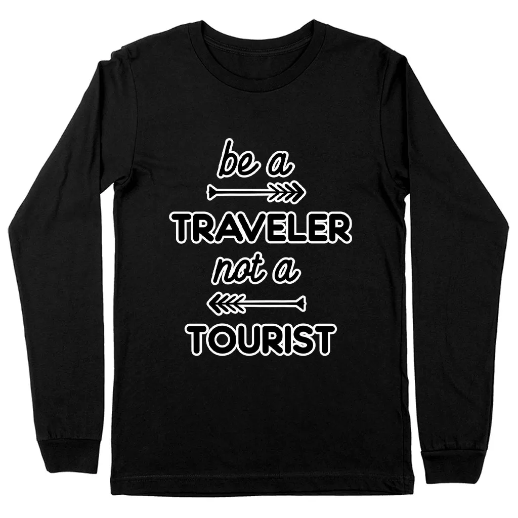 Be a Traveler Not a Tourist Long Sleeve T-Shirt – Cool Design T-Shirt – Unique Long Sleeve Tee