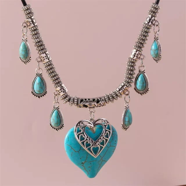 Bohemian Turquoise Heart Pendant Necklace for Women and Girls