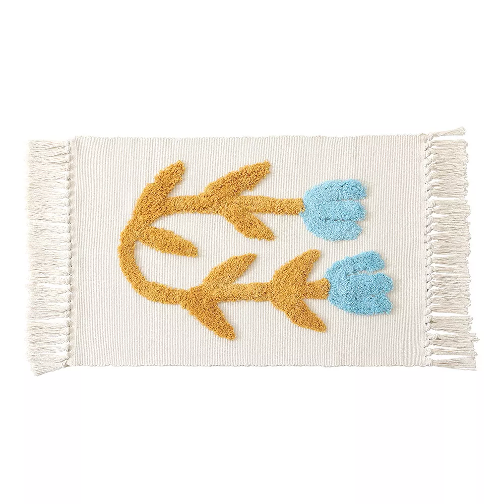 Made from a premium blend of cotton and linen, each rug is hand-woven using traditional techniques that highlight its artisanal beauty. The charming tufted floral motif pairs beautifully with a neutral color palette, creating a subtle yet stylish statement. Decorative tassels on both ends add a soft boho touch that makes this piece stand out without overpowering your space. Its anti-slip backing ensures it stays in place, making it as practical as it is pretty.