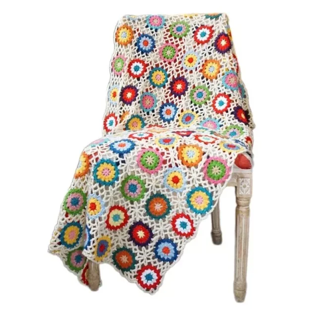 Wrap yourself in the warmth of nostalgia with our Handcrafted Crochet Geometric Throw. Expertly woven with a vibrant tapestry of geometric flowers, this blanket is a masterpiece that offers more than just comfort; it’s a slice of home. Every stitch tells a story, each pattern is a memory, and the colors are as inviting as a warm hug. Perfect for draping over a sofa, bed, or chair, it infuses any space with a touch of bohemian charm and a dash of vintage flair.
