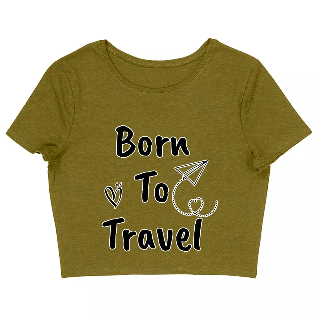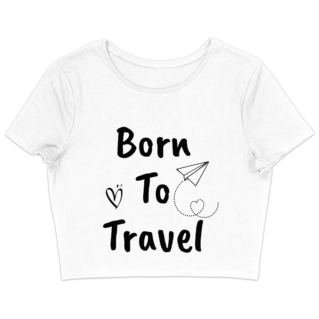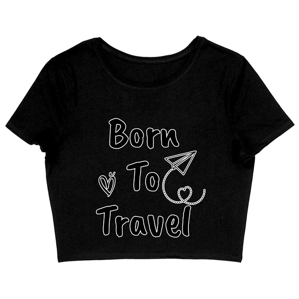 Born to Travel Women’s Cropped T-Shirt – Art Crop Top – Graphic Cropped Tee