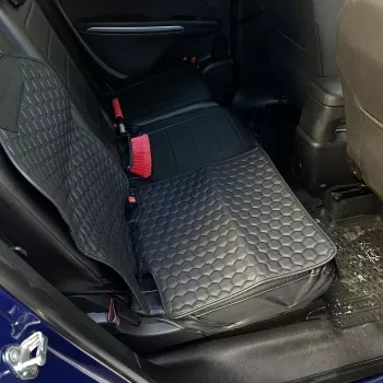 This seat protector mat has been a lifesaver for my car. It’s easy to install and stays in place, even with my kids jumping around. The material is tough and waterproof, so I don’t have to worry about spills or crumbs. It’s also very easy to clean – just a quick wipe and it’s done. It fits perfectly and doesn’t look bulky. It’s great for protecting my seats from wear and tear, especially with car seats. I highly recommend this product for anyone who wants to keep their car seats in great condition.