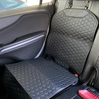 i recently got this car seat protector mat and it's been amazing. my car seats are finally safe from spills, crumbs, and pet hair. the material is tough and waterproof, making it perfect for my active lifestyle with kids and a dog. it fits perfectly on the seat and doesn’t slip around, thanks to the non-slip backing. installation was a breeze, and it covers a good portion of the seat, offering excellent protection. i love how easy it is to clean – just a quick wipe and it’s spotless. it also helps prevent scratches and indentations from car seats. this mat has really helped keep my car seats in great condition. highly recommend it to anyone looking for an effective way to protect their seats.