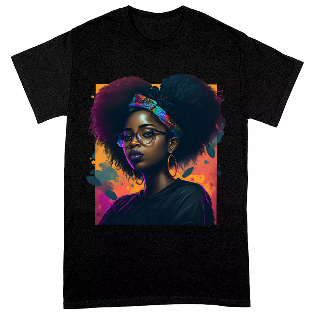 Cartoon Black Girl Art Heavy Cotton T-Shirt – Unique Tee Shirt – Cute T-Shirt