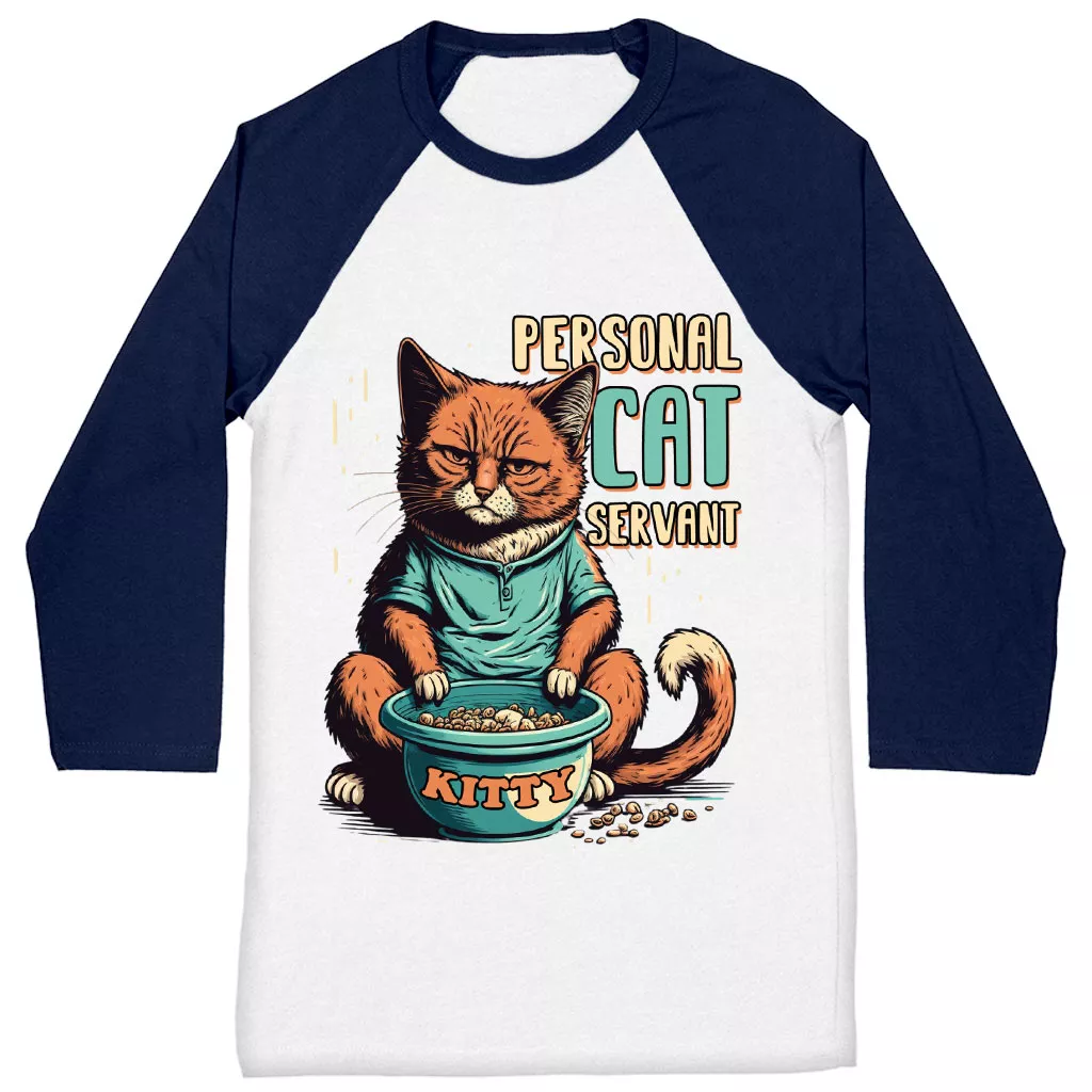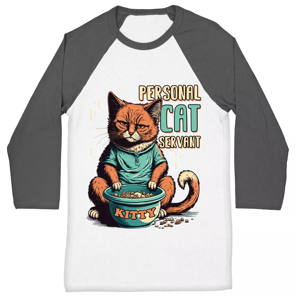 Cat Servant Baseball T-Shirt – Funny Animal T-Shirt – Trendy Baseball Tee