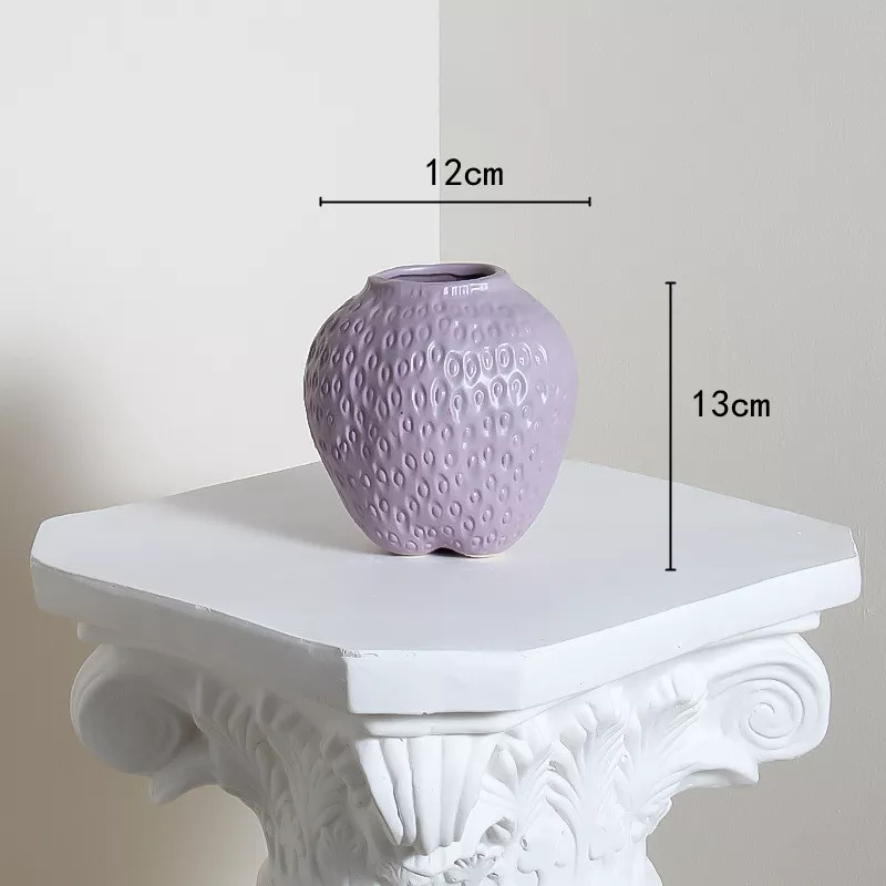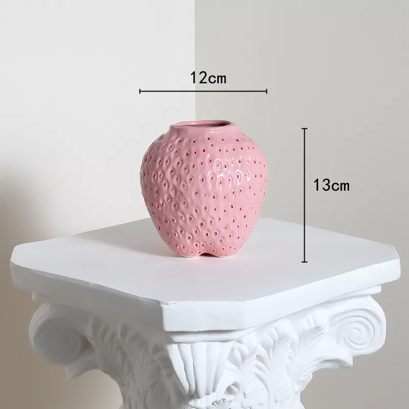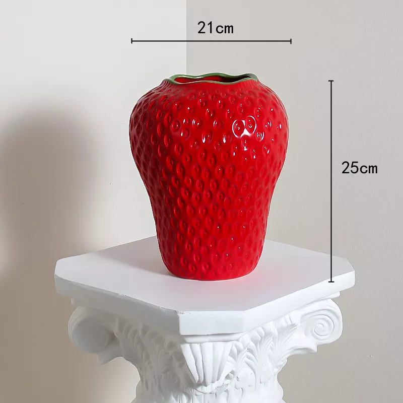 Crafted from high-quality ceramic and porcelain, this vase blends durability with a smooth, glossy finish that’s easy to clean and perfect for daily use. Measuring medium in size, it’s ideal for holding dried flowers, artificial arrangements, or even small terrarium setups. The strawberry cartoon design gives it a unique twist that’s perfect for anyone who loves quirky decor with a fresh, natural flair.