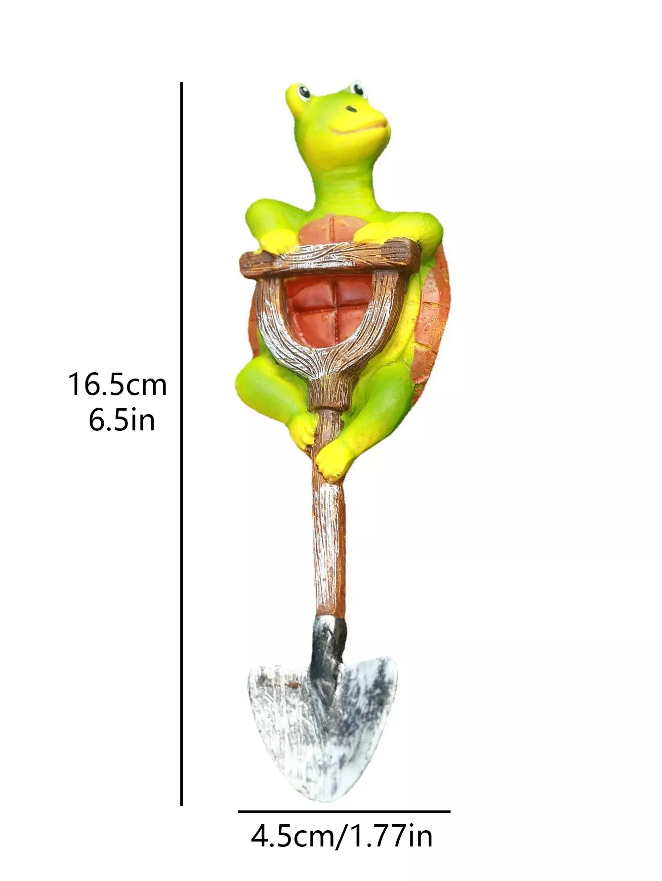 • Charming Design: A lovable turtle standing on a shovel, combining nature and craft decor.