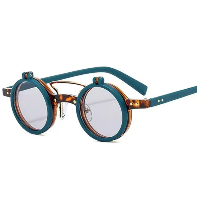 Chic Round Punk Sunglasses with Flip Lenses and UV400 Protection