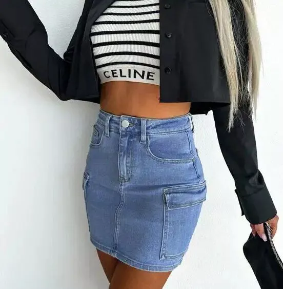 Introducing the ultimate fusion of casual comfort and trendy design – our latest Spliced Pocket Denim Skirt. This chic skirt encapsulates the essence of 2023’s fashion trends, perfect for those who want to flaunt a timeless street-style look with a modern twist. The skirt’s solid pattern and empire waistline highlight your silhouette, while the pencil fit speaks to a svelte and sophisticated profile.