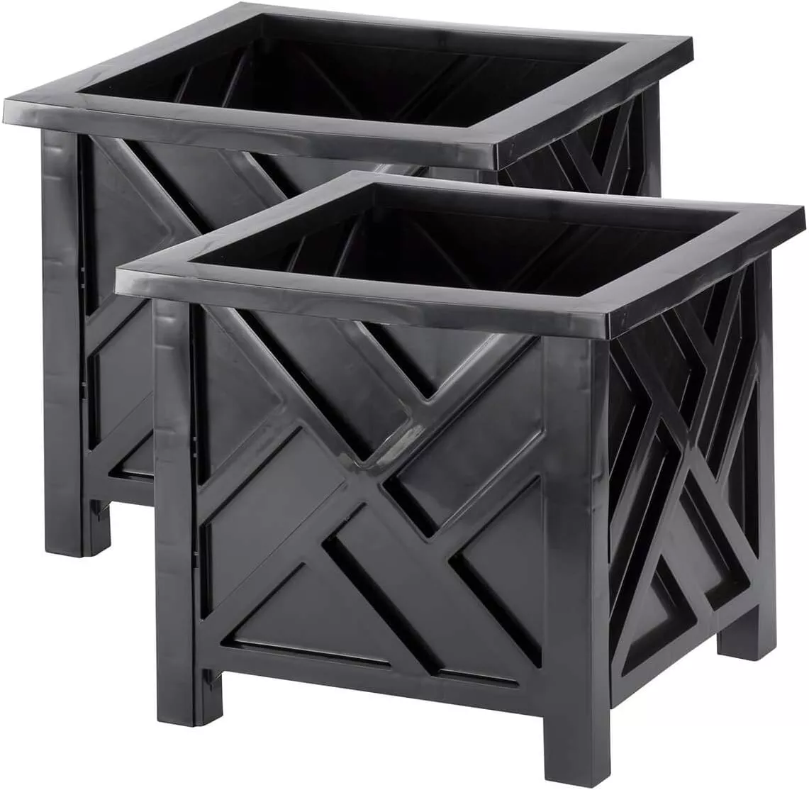 Elevate the beauty of your garden, patio, or porch with this set of two classic outdoor planter boxes. Designed with a traditional Chippendale lattice pattern, these decorative holders are perfect for enhancing the presentation of your flowers, topiaries, or greenery. Whether you’re creating a cozy front porch arrangement or brightening up your backyard, these planter boxes bring charm and structure to your space without demanding constant maintenance.