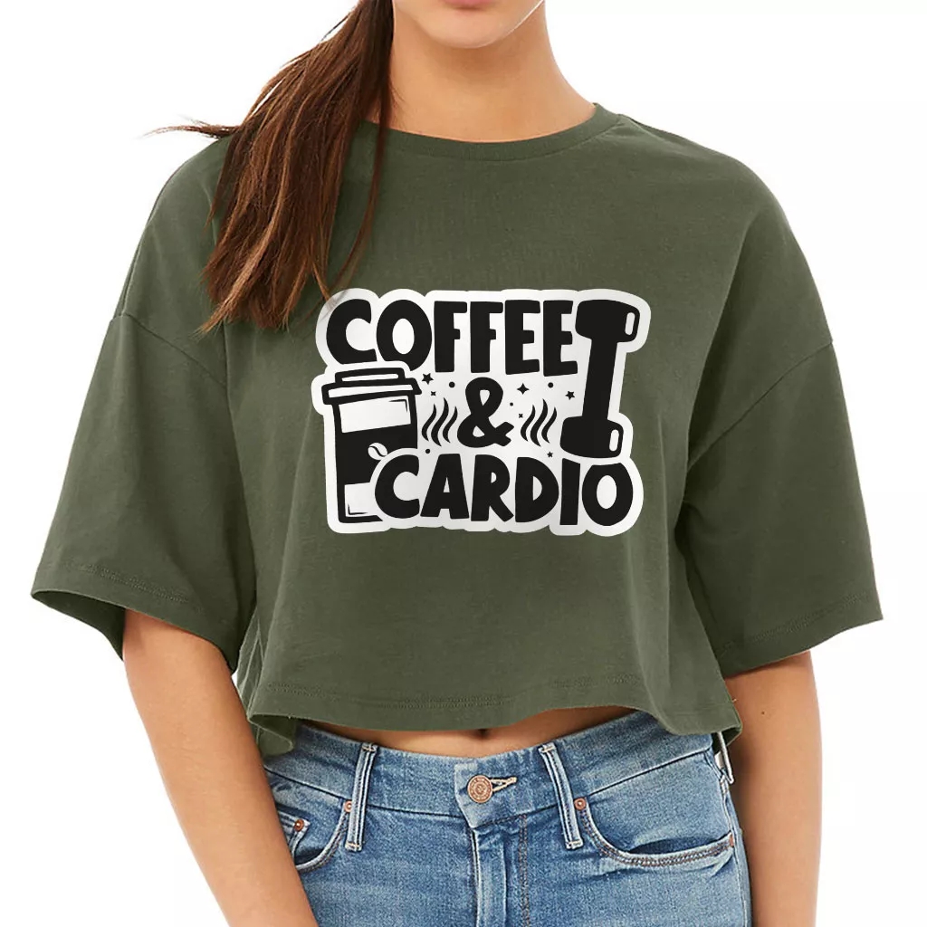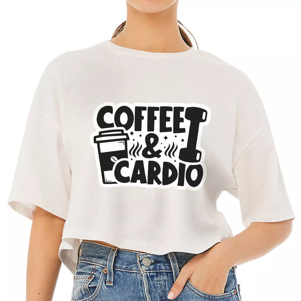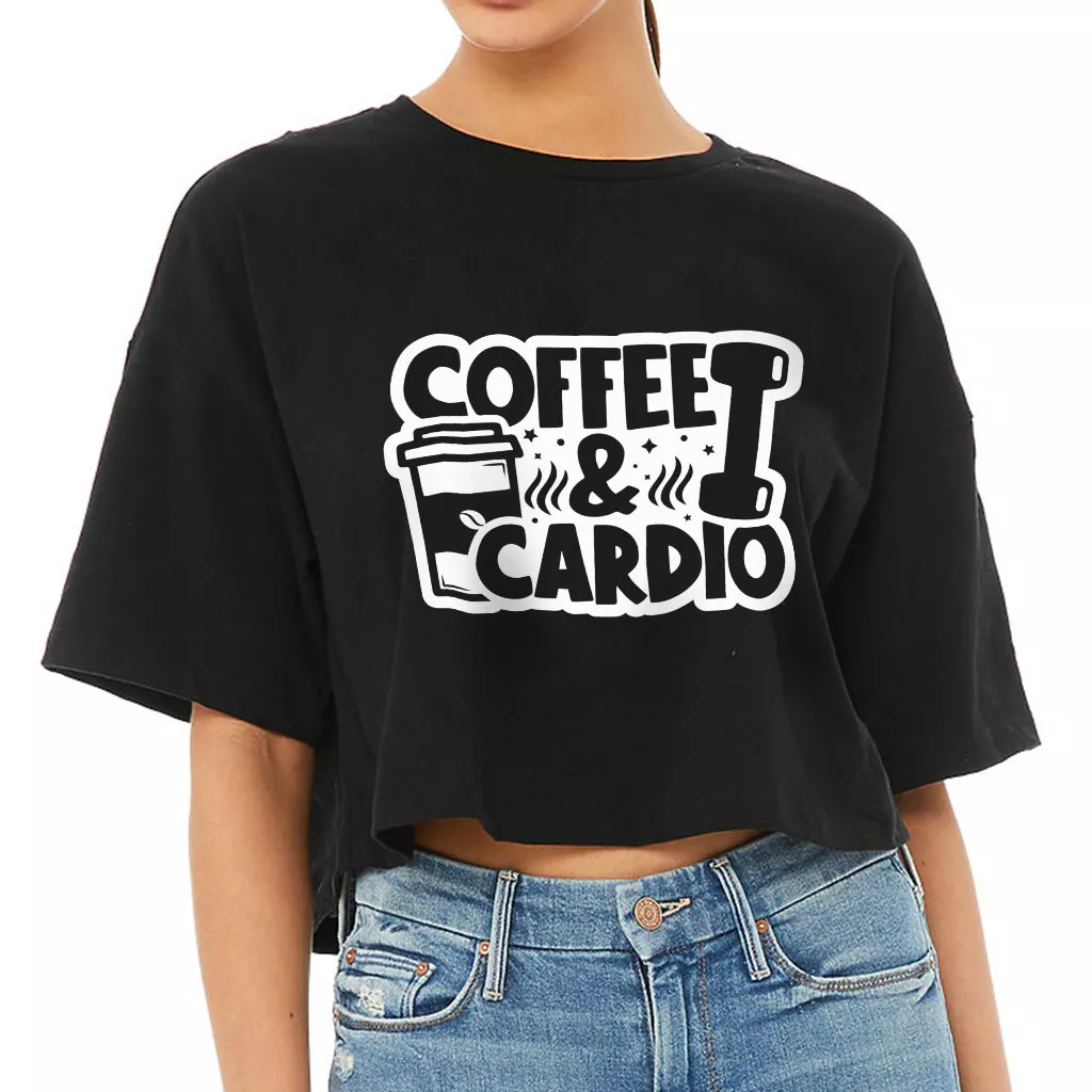 Coffee and Cardio Women’s Crop Tee Shirt – Graphic Cropped T-Shirt – Themed Crop Top