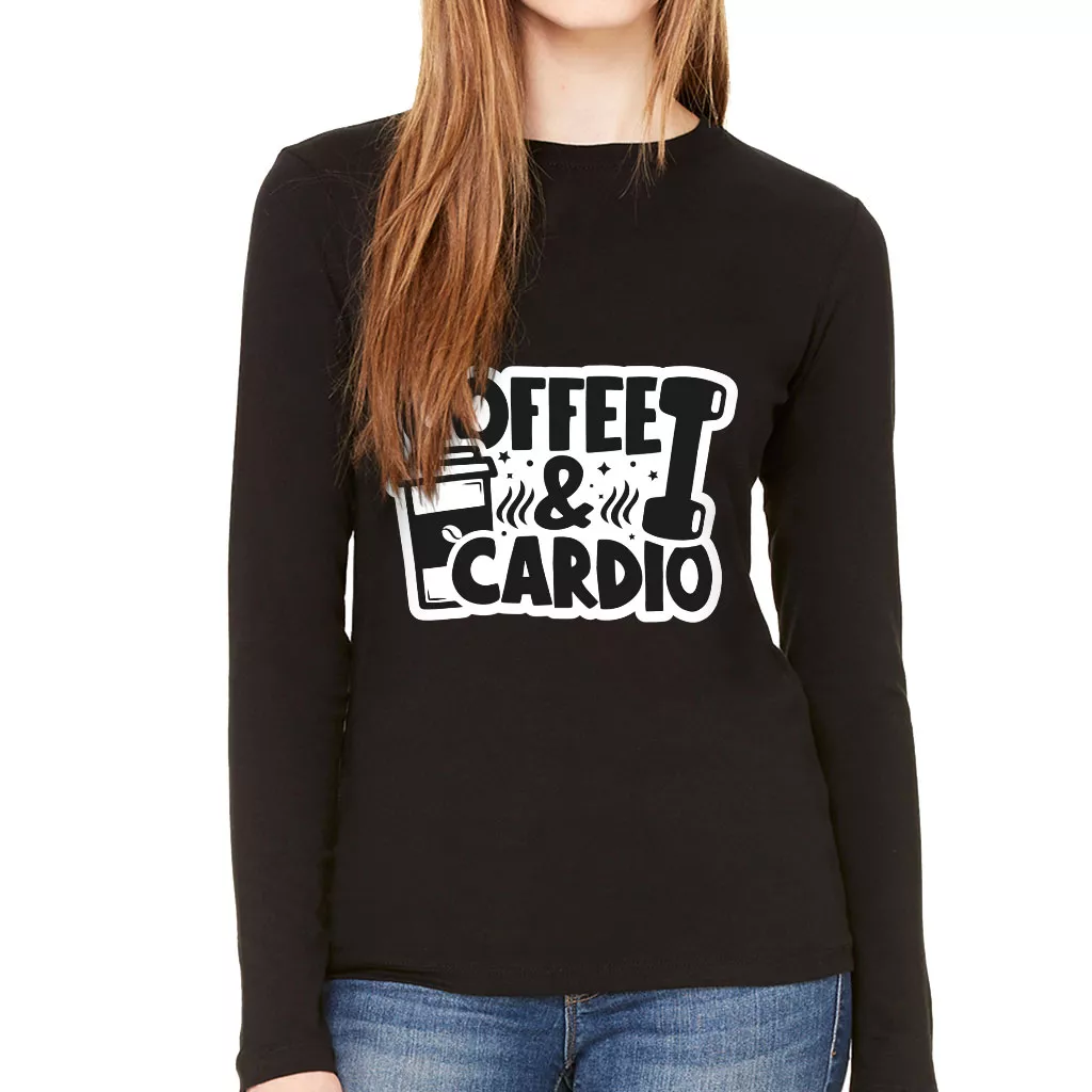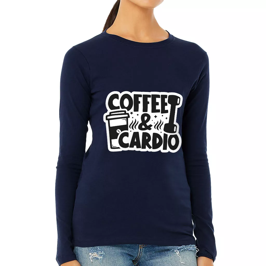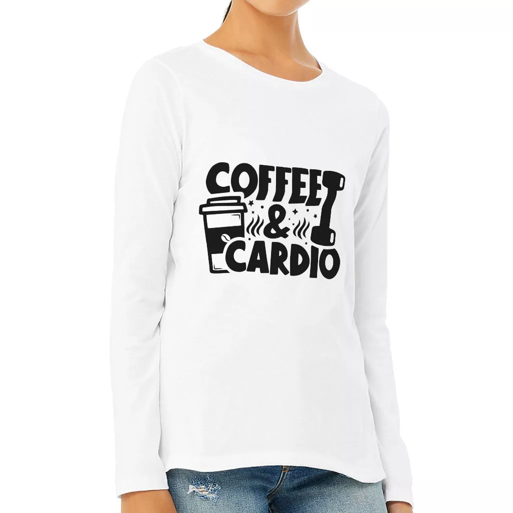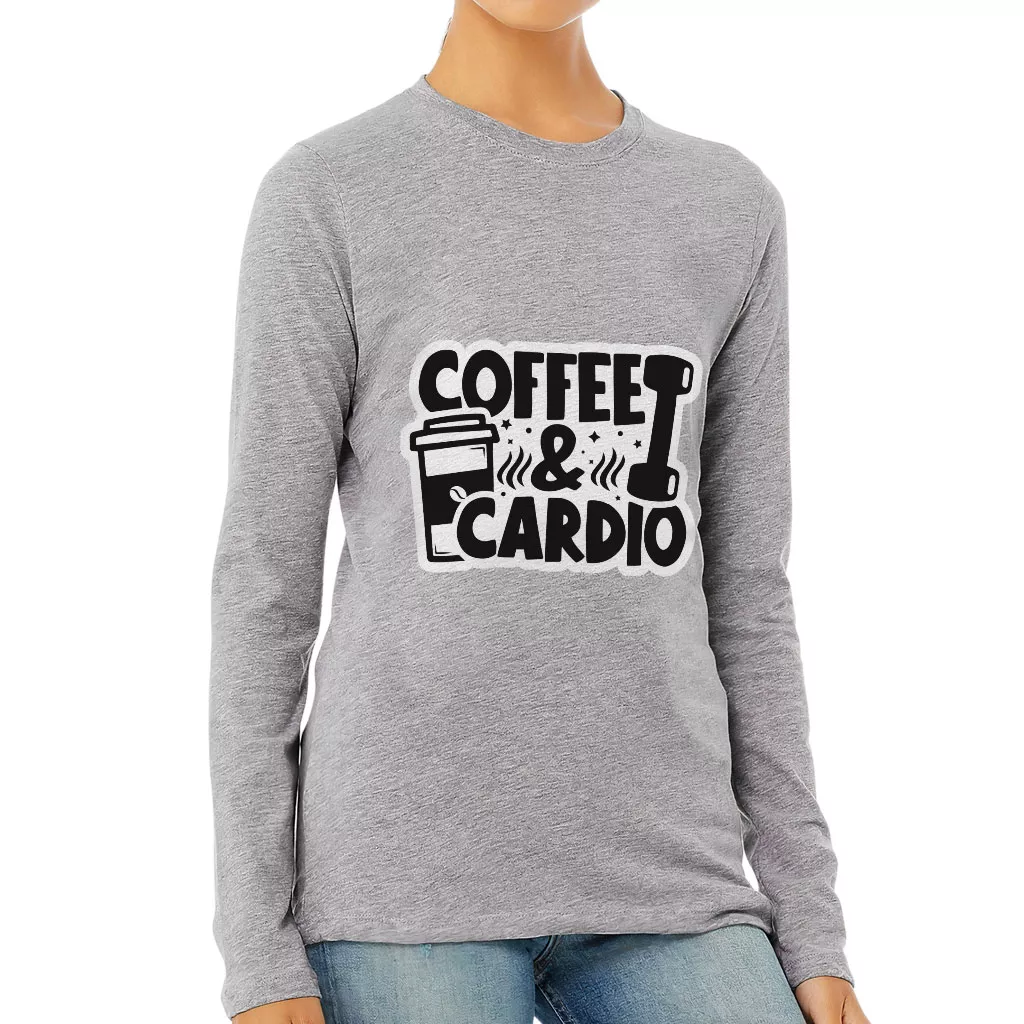 Coffee and Cardio Women’s Long Sleeve T-Shirt – Graphic Long Sleeve Tee – Themed T-Shirt
