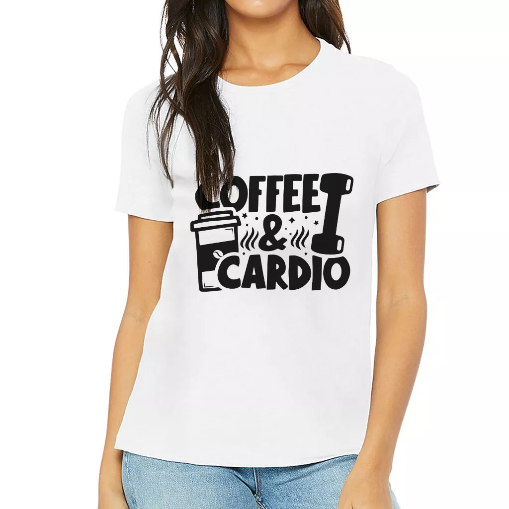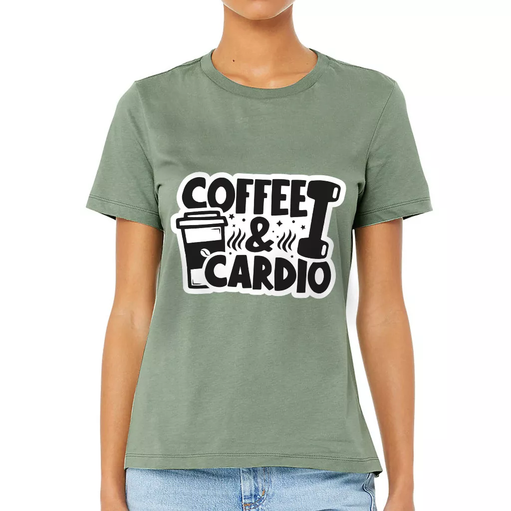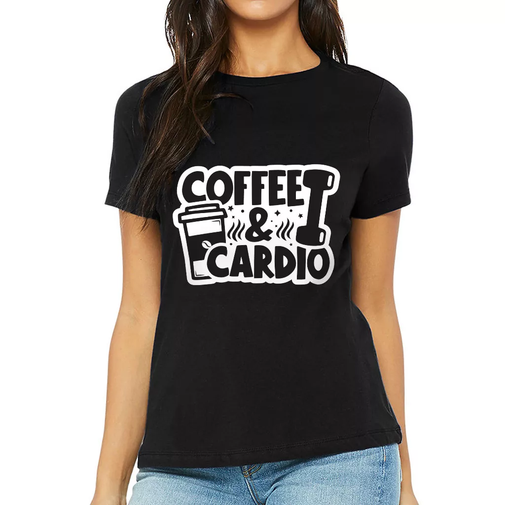 Coffee and Cardio Women’s T-Shirt – Graphic T-Shirt – Themed Relaxed Tee