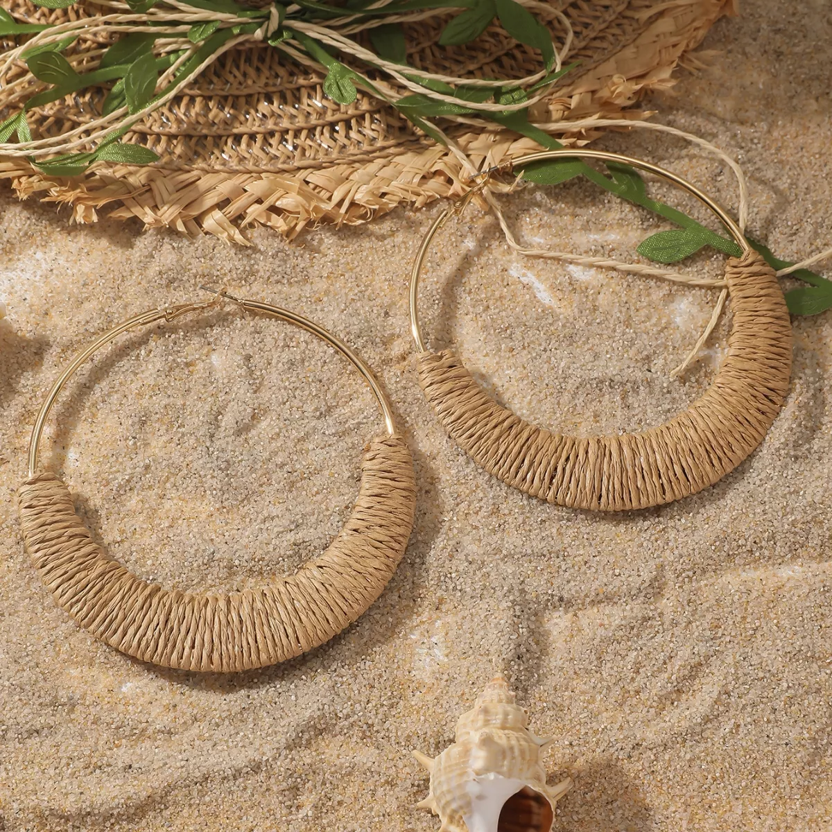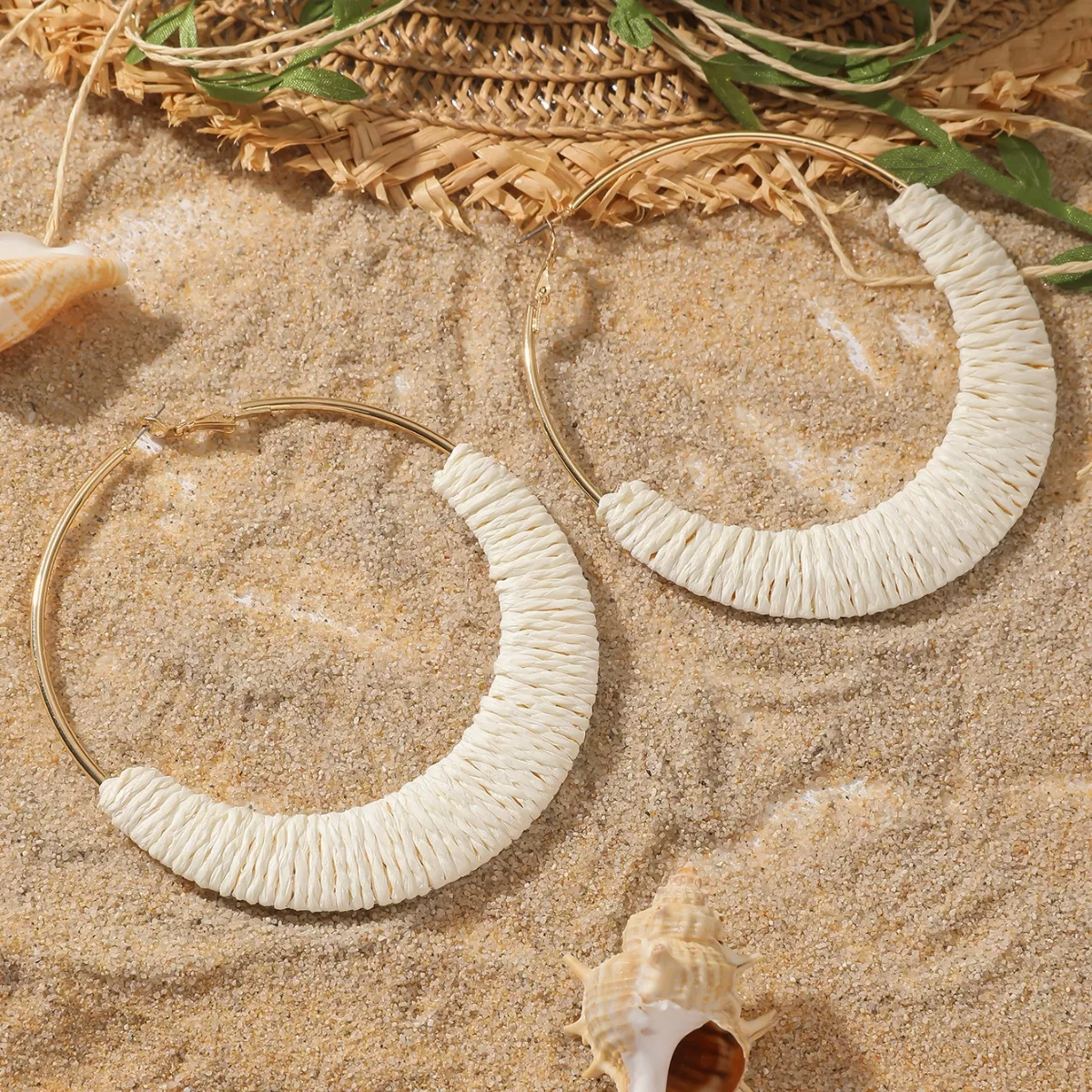 • Handcrafted Design: Each earring is carefully handmade, showcasing an artistic blend of raffia and zinc alloy for a unique, eye-catching texture.