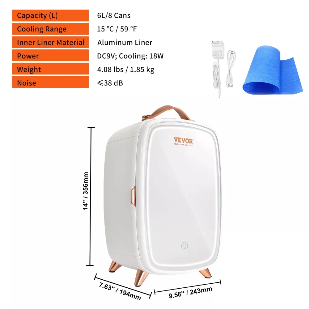 More than just a fridge, it’s tailored for beauty enthusiasts with a built-in high-definition makeup mirror and three adjustable LED light levels. Customize the lighting to suit your environment and achieve flawless makeup application anytime, anywhere. Compact yet spacious enough to hold up to eight 11-ounce cans, it fits perfectly on your countertop, dorm desk, or car console.