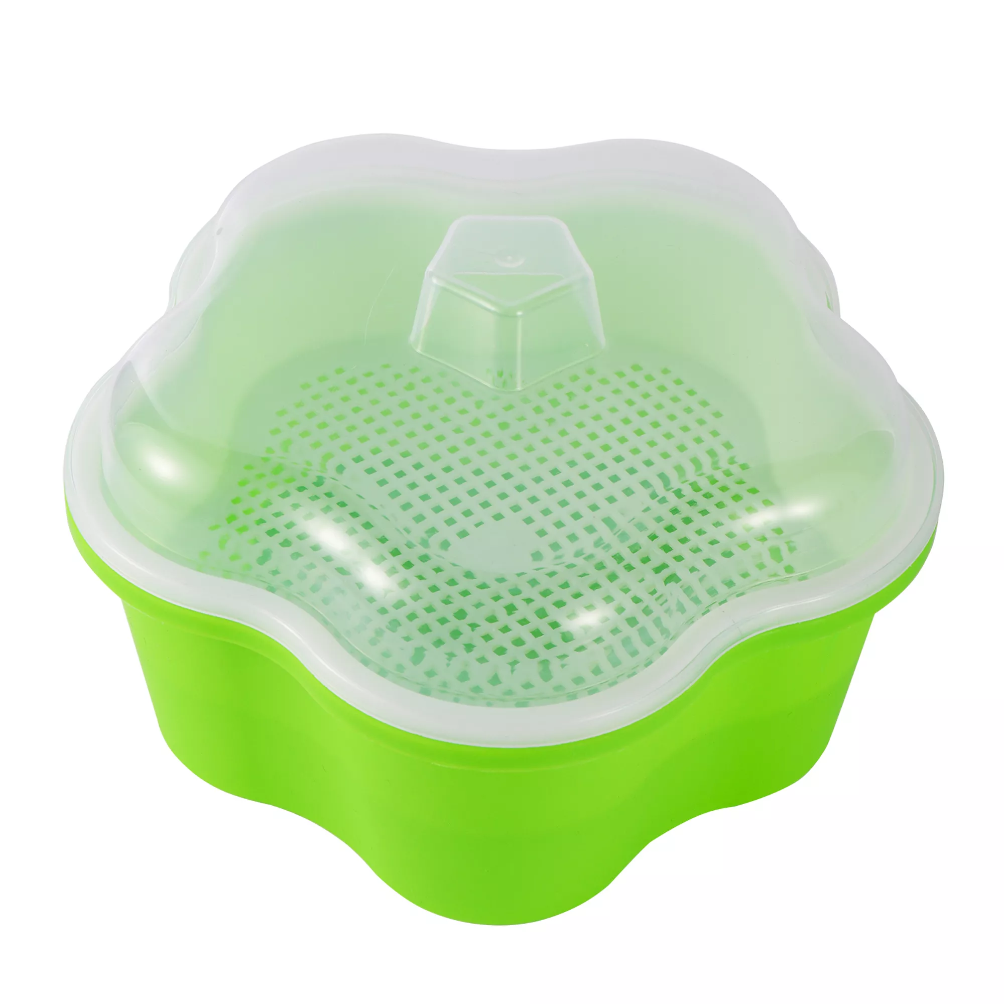 This sprouter is designed to make your sprouting experience simple and efficient. The set includes a clear lid, a white mesh incubator tray, and a green water container. The fine mesh tray features a concave-convex structure and small holes to promote excellent air circulation and easy drainage, helping seeds take root quickly with a high germination rate.