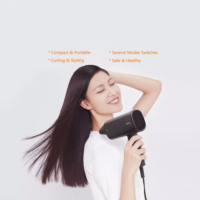 This hair dryer offers two-speed temperature settings and multiple nozzle positions to cater to various hairstyling needs. Whether you want to dry your hair quickly, add volume, curl, or create sleek styles, this tool has got you covered. Easily switch between modes with one hand, even during the drying process.