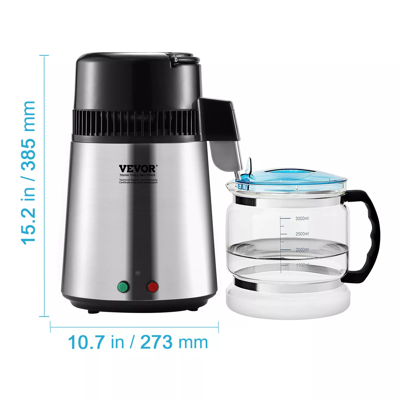 Crafted for both performance and durability, this distiller is made with food-grade 304 stainless steel and a thick, BPA-free borosilicate glass container. All components in contact with water are certified food-safe, giving you peace of mind with every use. The aluminum four-blade fan and upgraded stainless steel exhaust cover ensure better cooling and longer product life. It’s built to last—and to serve.