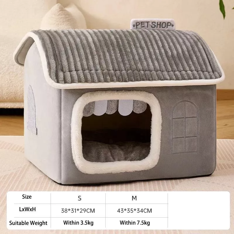 This pet house is ideal for use during fall and winter when temperatures drop and your pet seeks warmth and safety. The high rebound sponge filling offers excellent cushioning, making it perfect for older pets or those who need extra joint support. The enclosed design creates a protective space where your dog or cat can feel safe, making it especially great for shy or anxious pets.