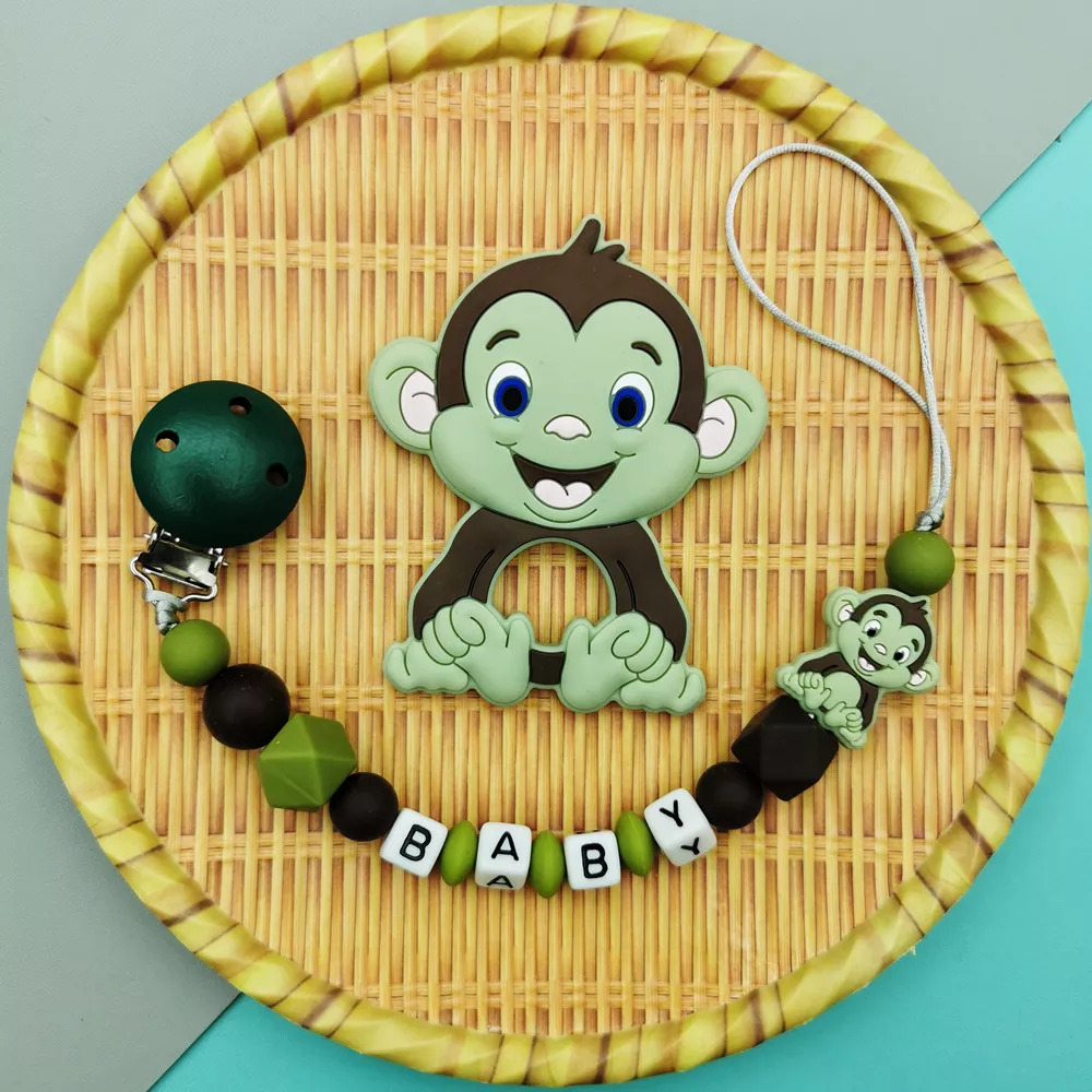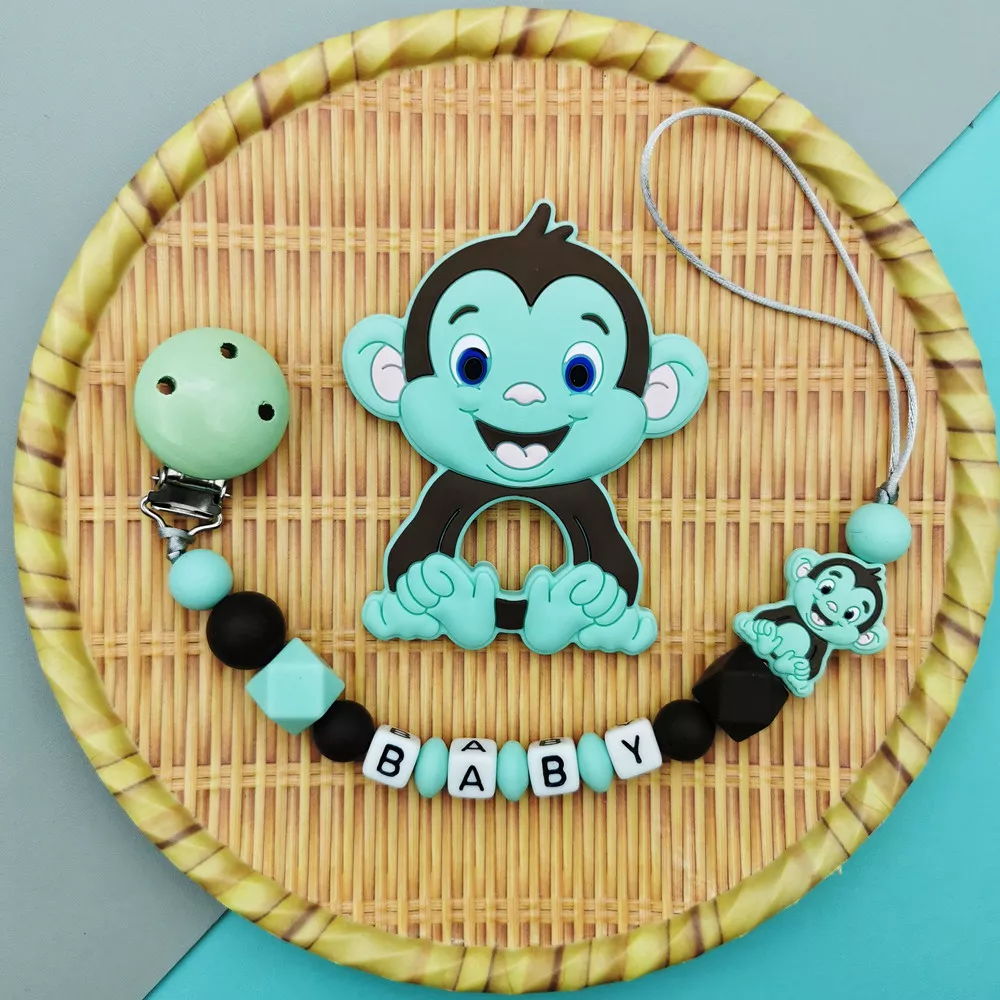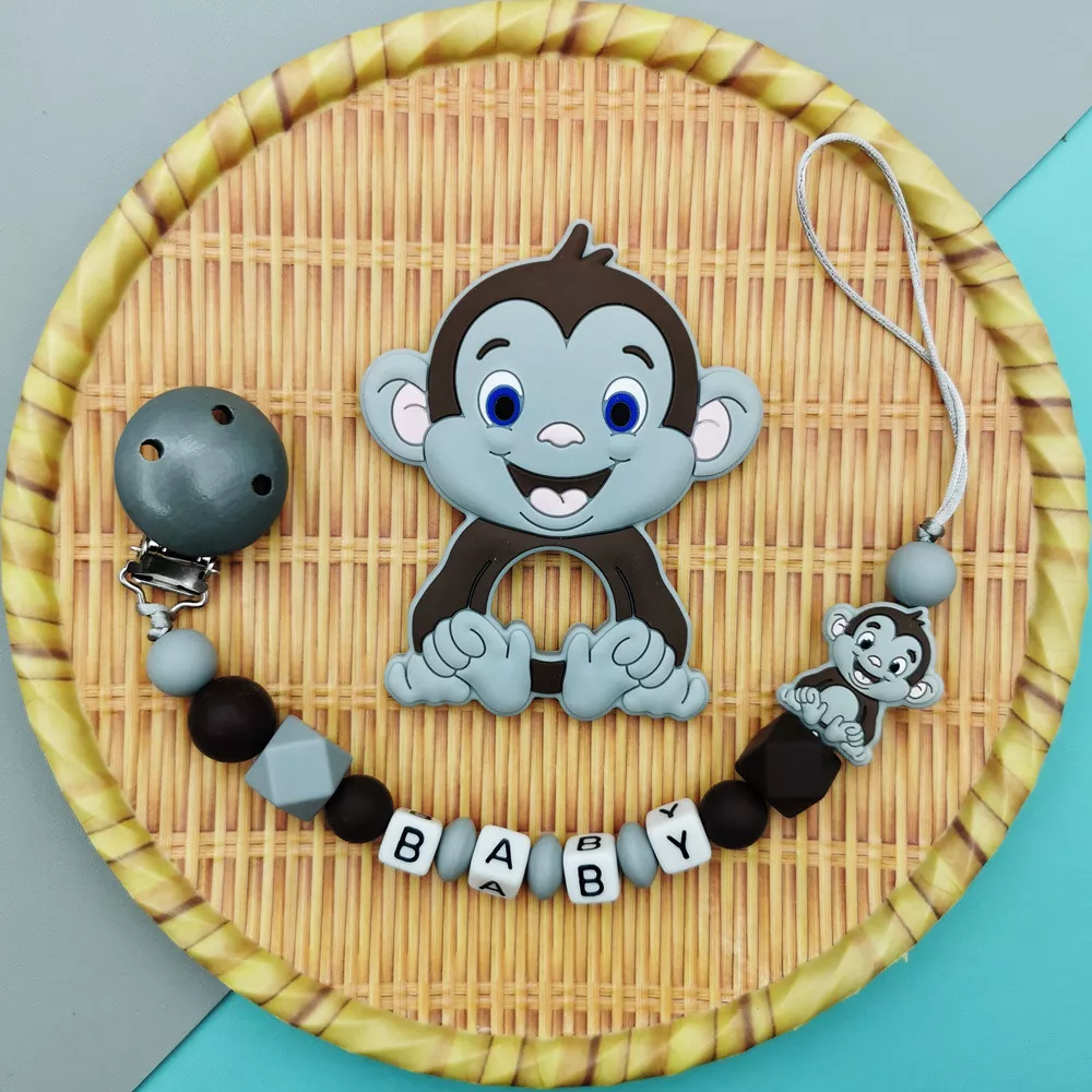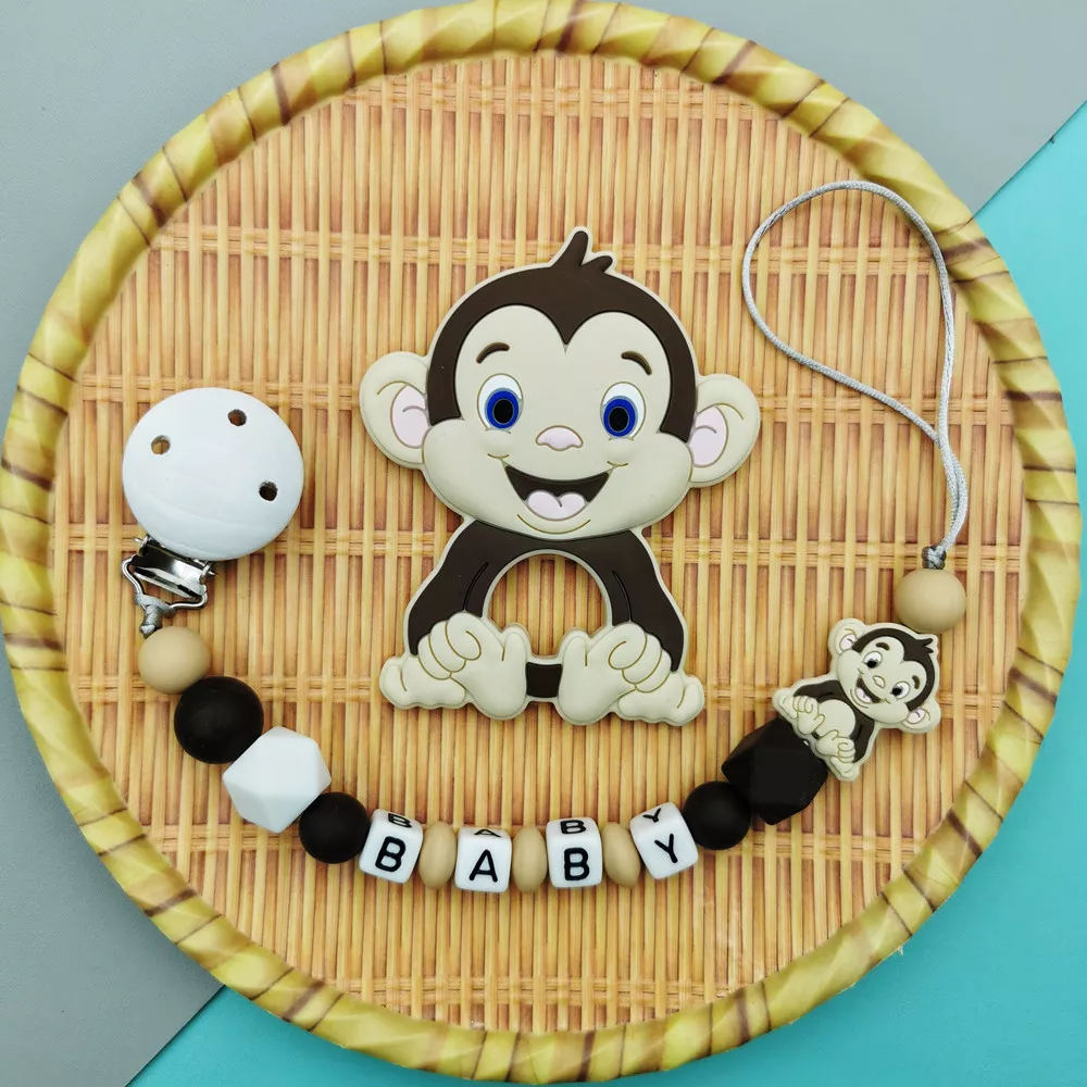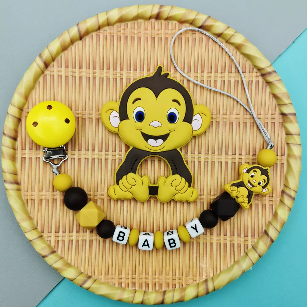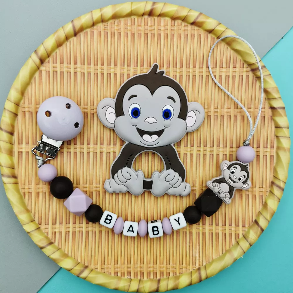 Custom Baby Name Pacifier Clip with Silicone Monkey Teether Toy