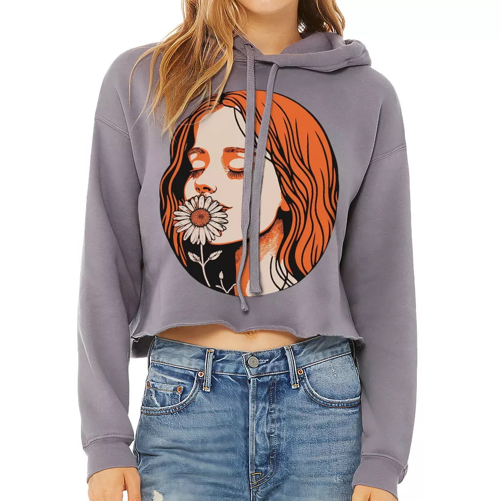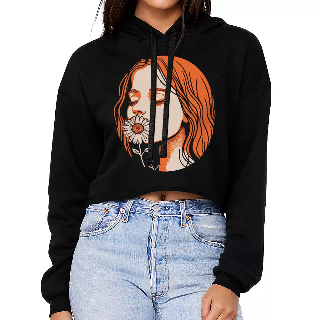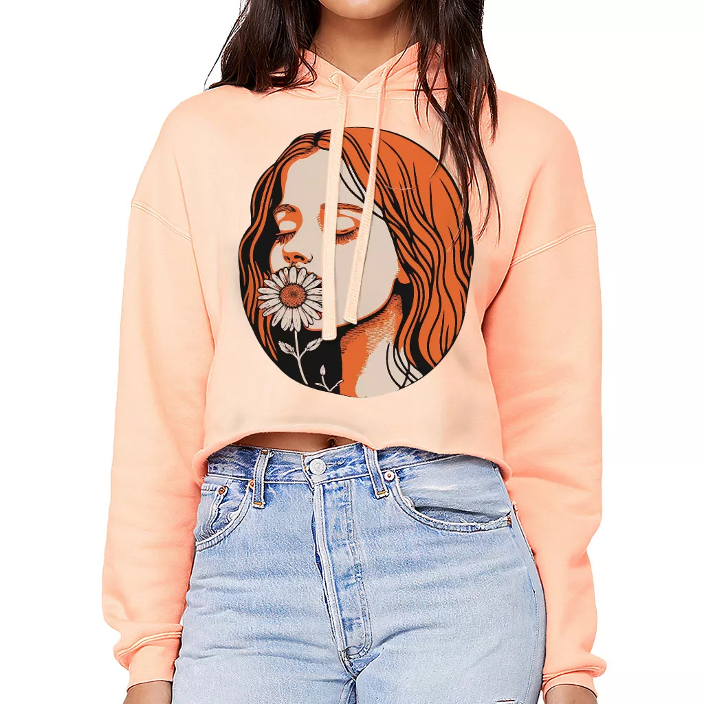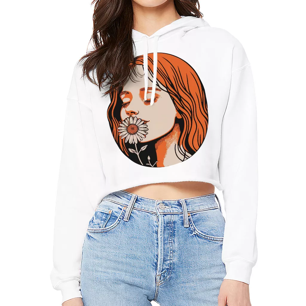Cute Art Women’s Cropped Hoodie – Floral Cropped Hoodie – Artwork Hooded Sweatshirt