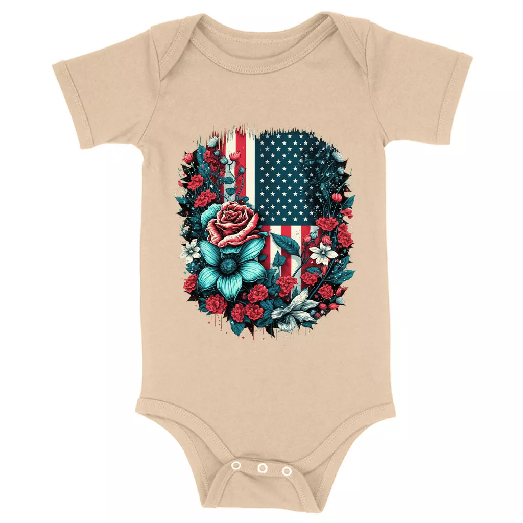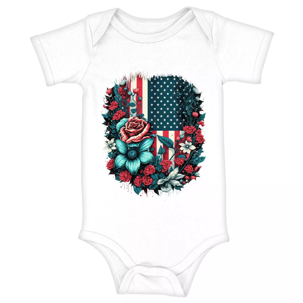 Cute Patriotic Baby Jersey Onesie – Floral Baby Bodysuit – USA Flag Baby One-Piece