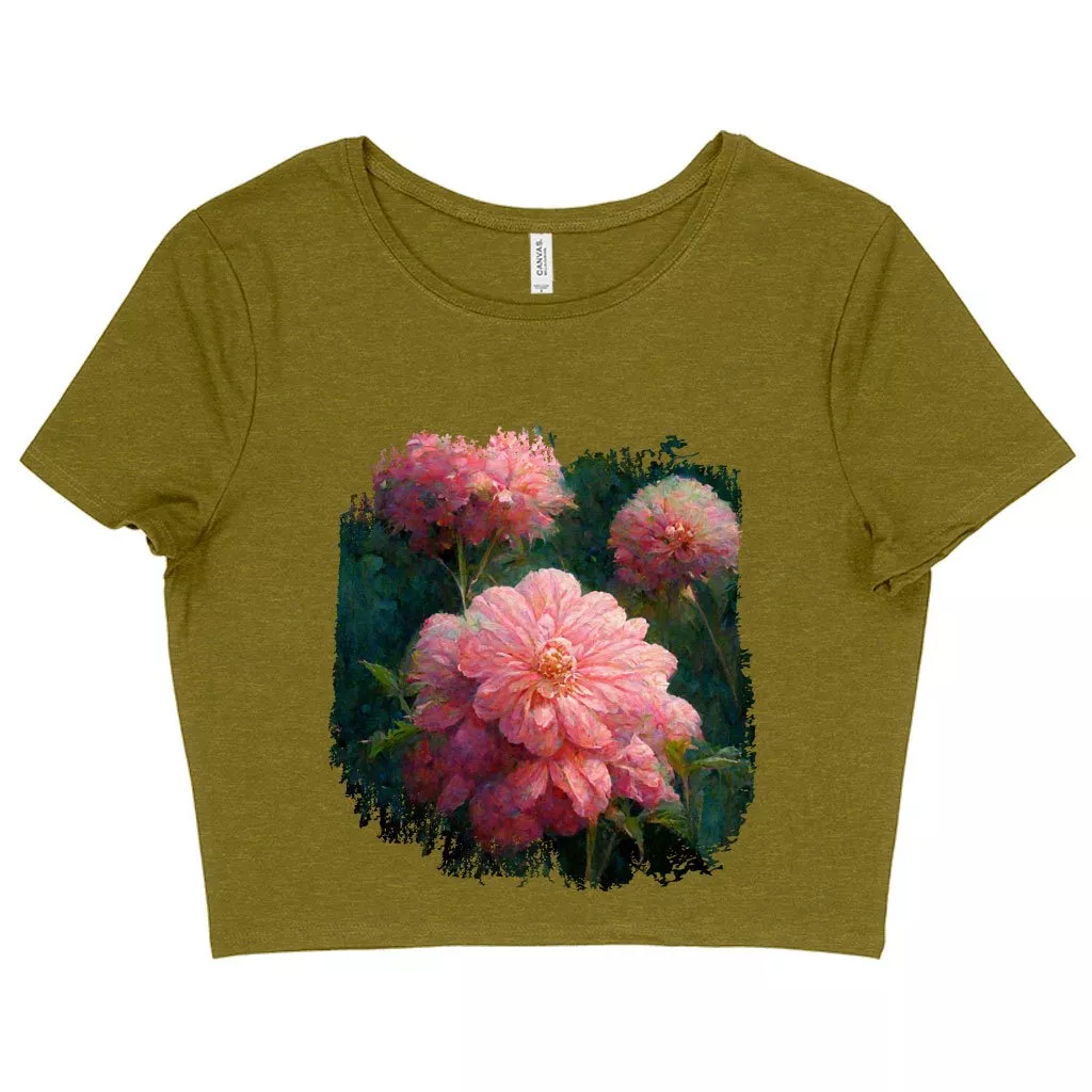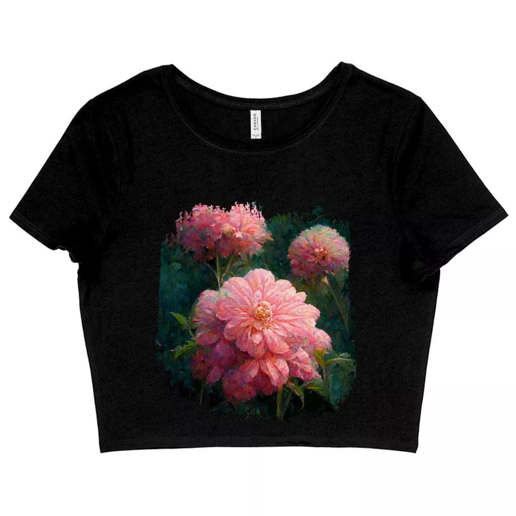 Dahlia Flower Design Women’s Cropped T-Shirt – Graphic Crop Top – Art Crop Tee Shirt