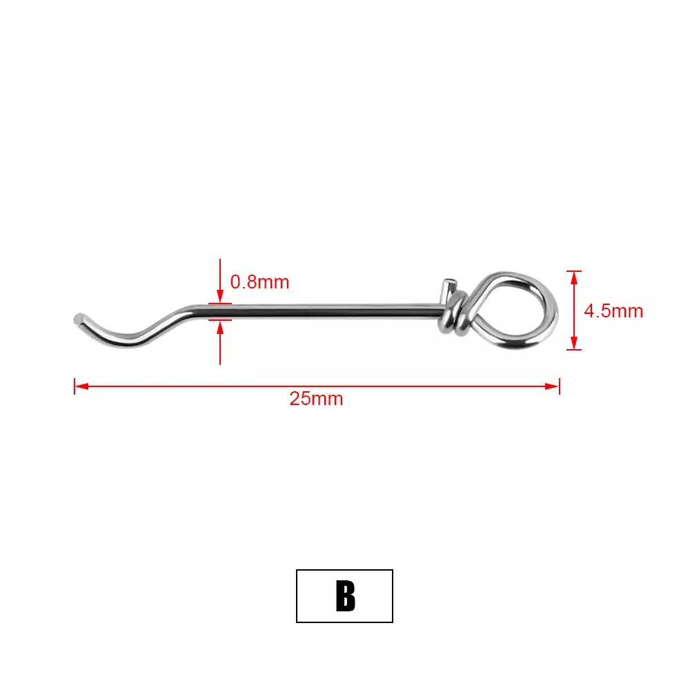 Upgrade your fishing game with these durable stainless steel stinger spike hook pins designed specifically for soft bait fishing. Measuring 1 inch and 1.2 inches in length, these pins provide a secure connection between your soft lures and stinger hooks, ensuring they stay in place during every cast and catch. Crafted from corrosion-resistant stainless steel, they’re perfect for both freshwater and saltwater fishing environments, from lakes and rivers to ocean rock and beach fishing.