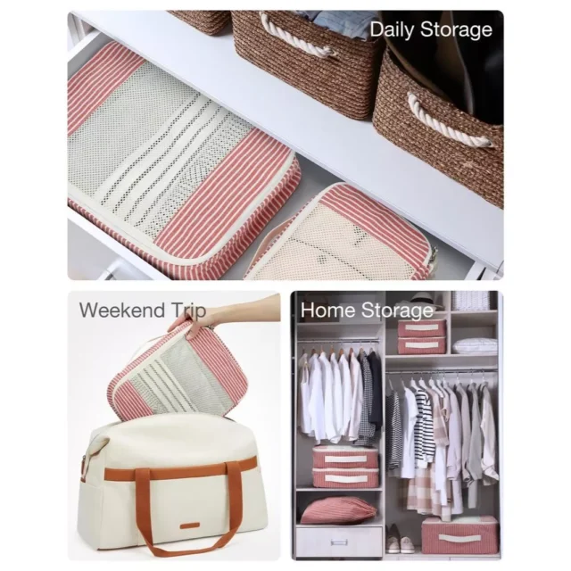 Whether you’re heading on a long vacation or a short business trip, these packing cubes are your perfect travel companion. Use them in your suitcase, backpack, or duffle bag to keep your belongings neatly organized. They’re also great for home use, keeping your closet and drawers tidy.